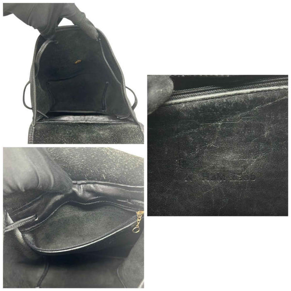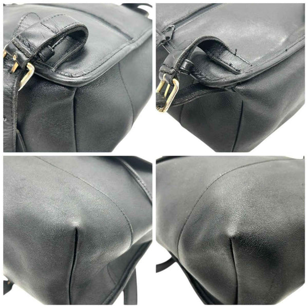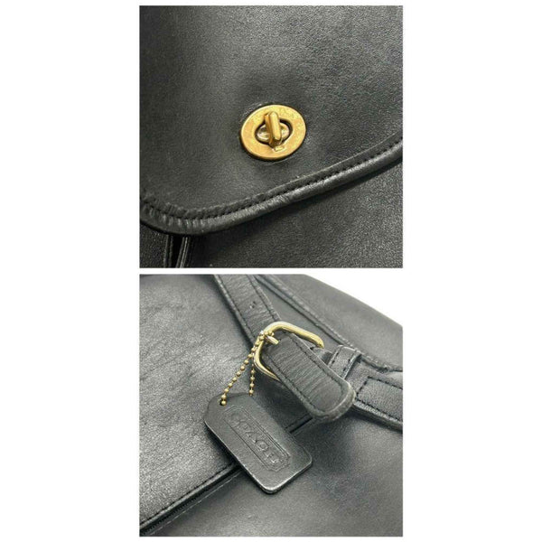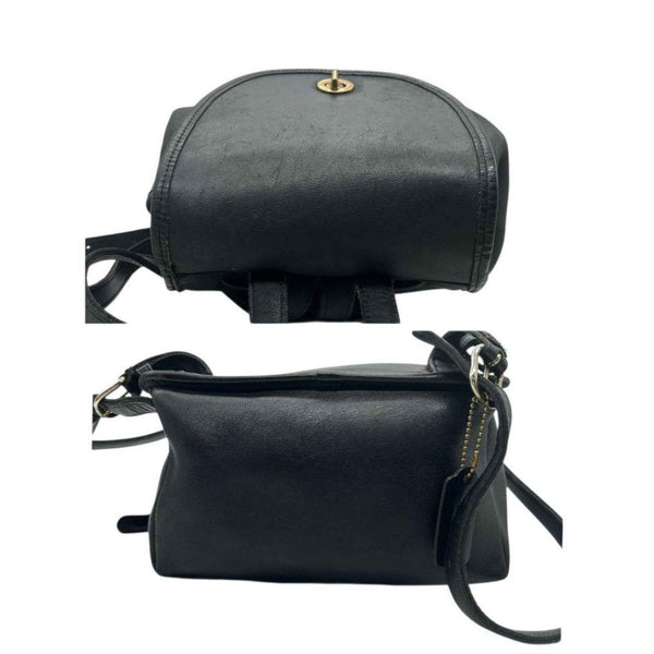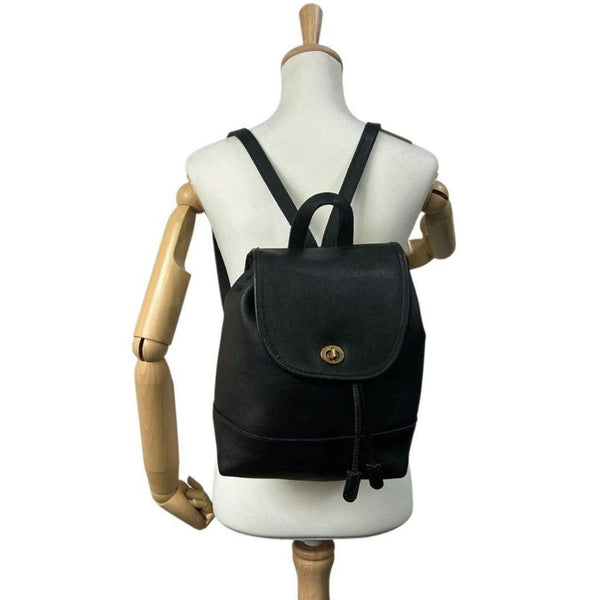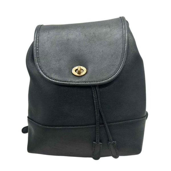 COACH Backpack, Old Coach Leather, Black, Drawstring, Flap, Turnlock, Logo Tag, Size s47