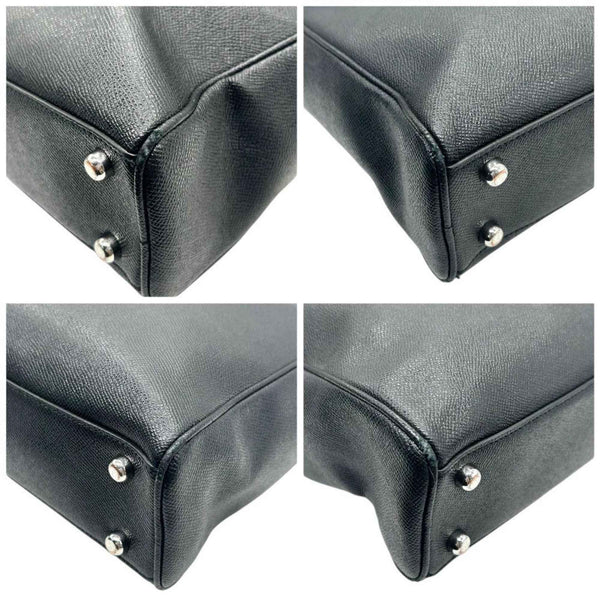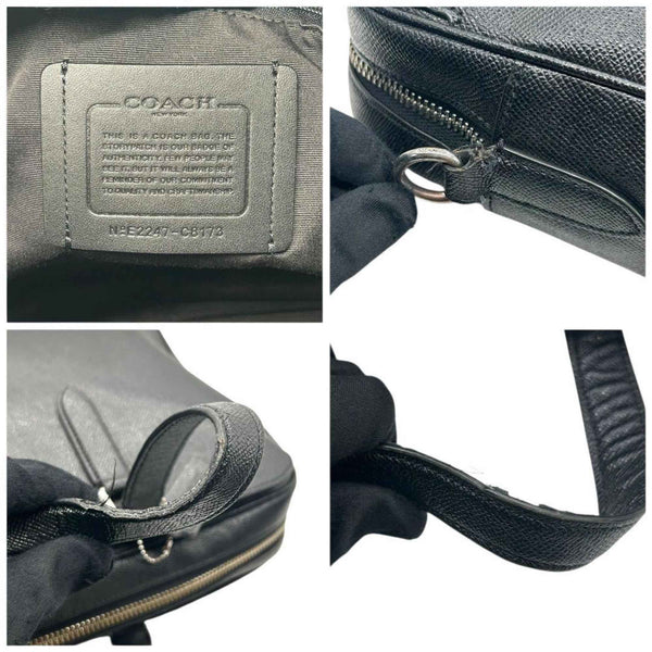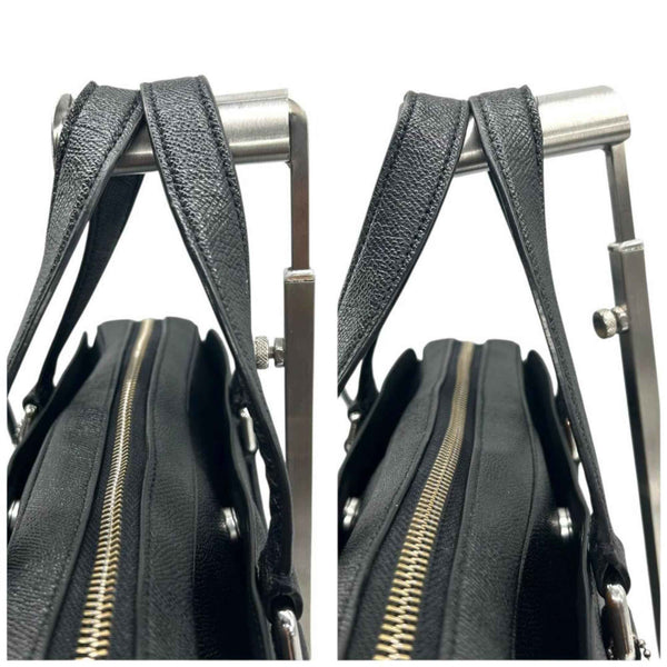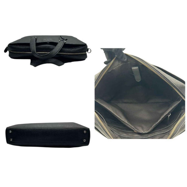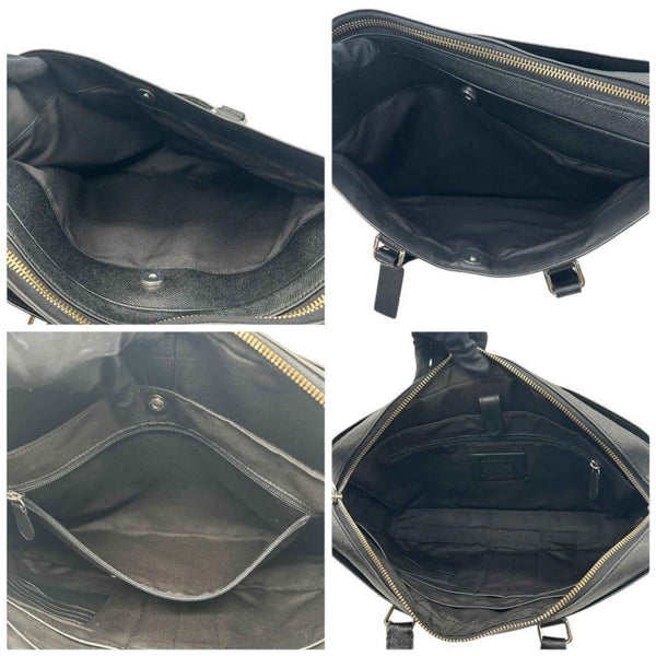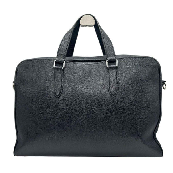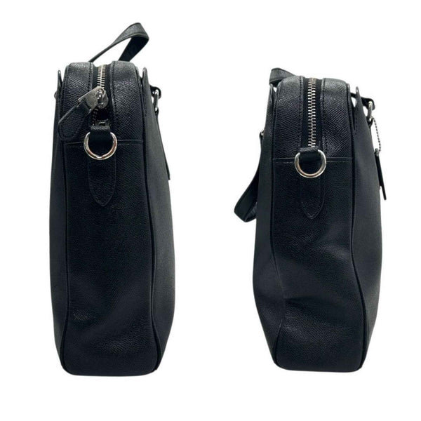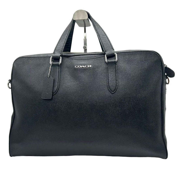 COACH Black Leather Business Bag, 2-Way Tote Handbag, Shoulder Crossbody Silver Hardware, Logo Tag, C8173