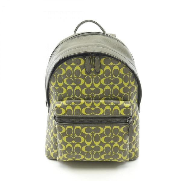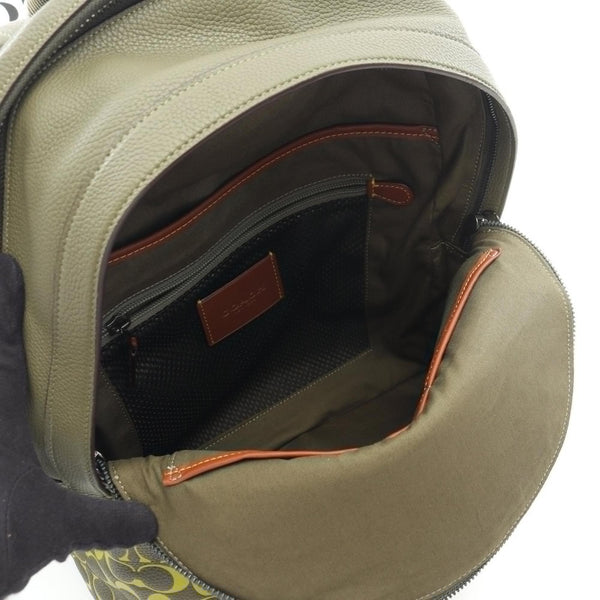 Coach Charter Signature Backpack, Leather, Men's, Khaki and Yellow, CA269
