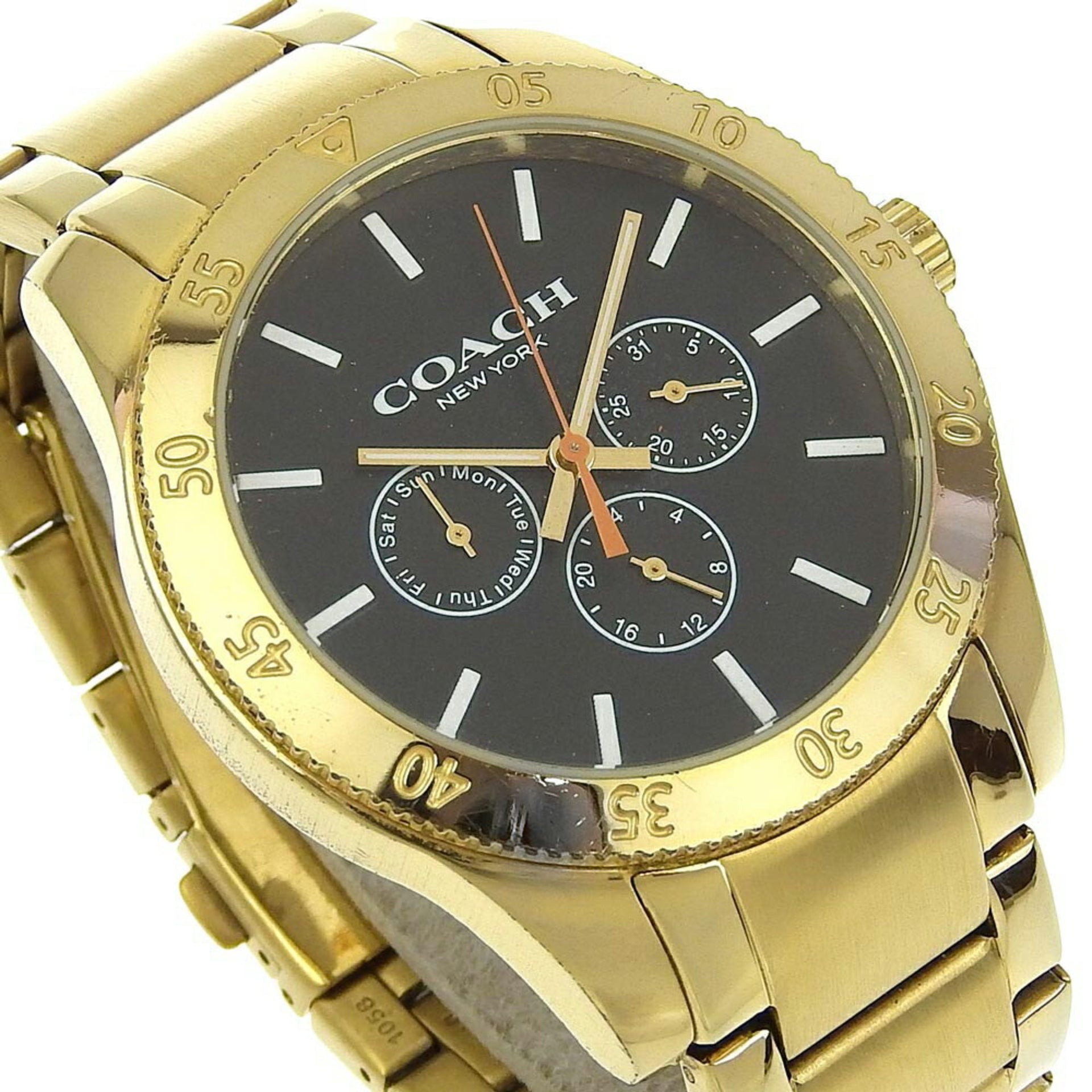 Coach Day Date Watch CA133.2.95.1754 Gold Plated Quartz Multi-Hand Analog Display Black Dial Men\'s I220823031