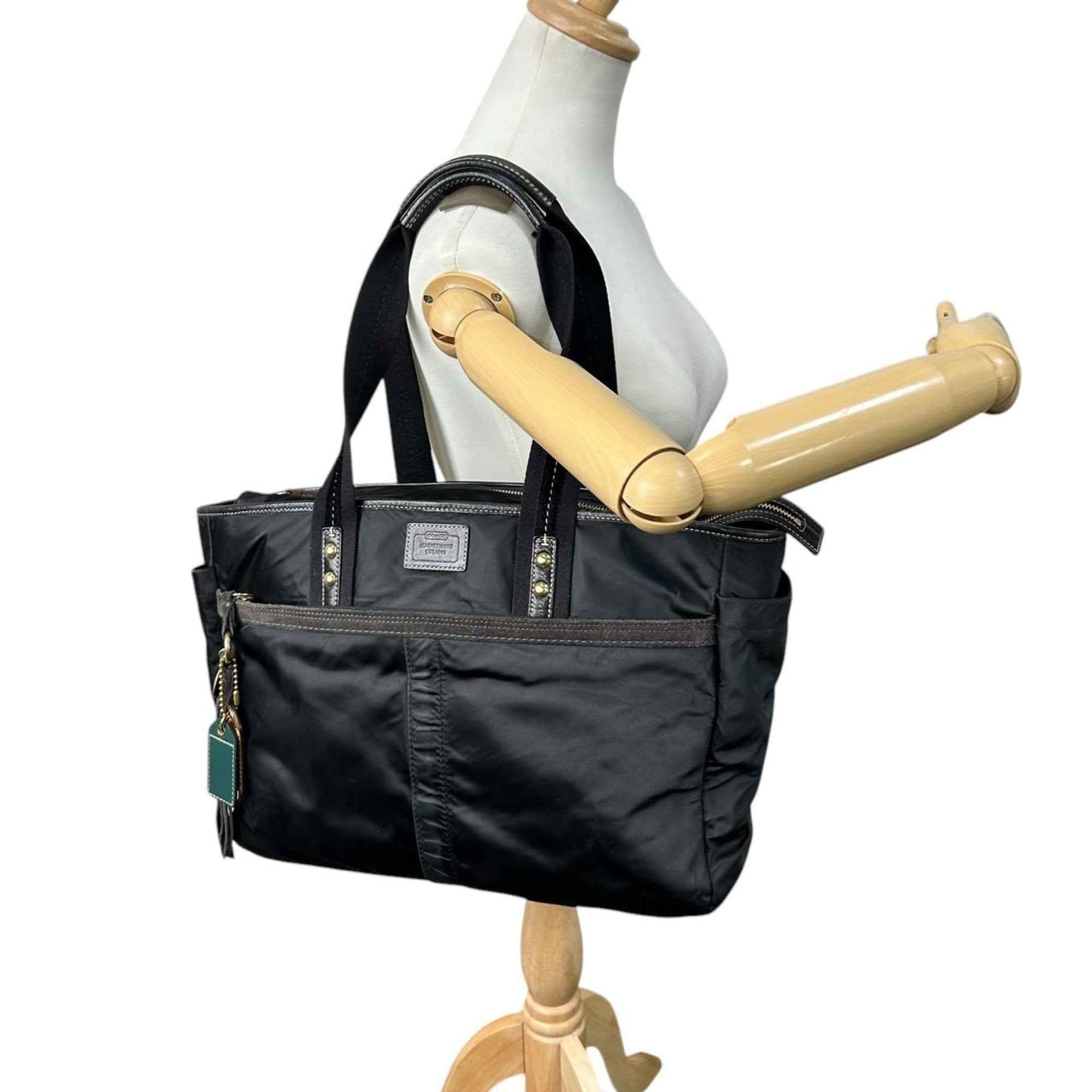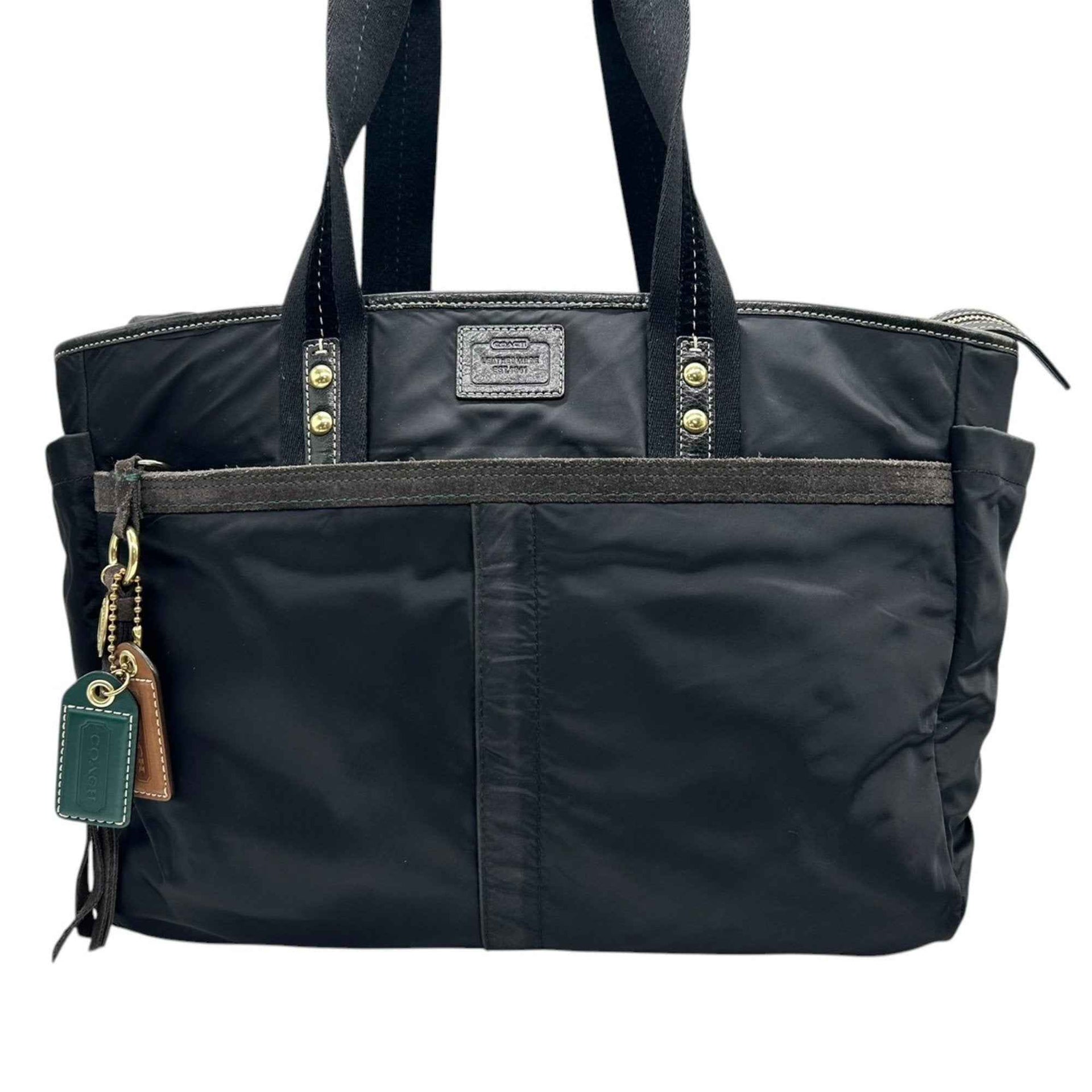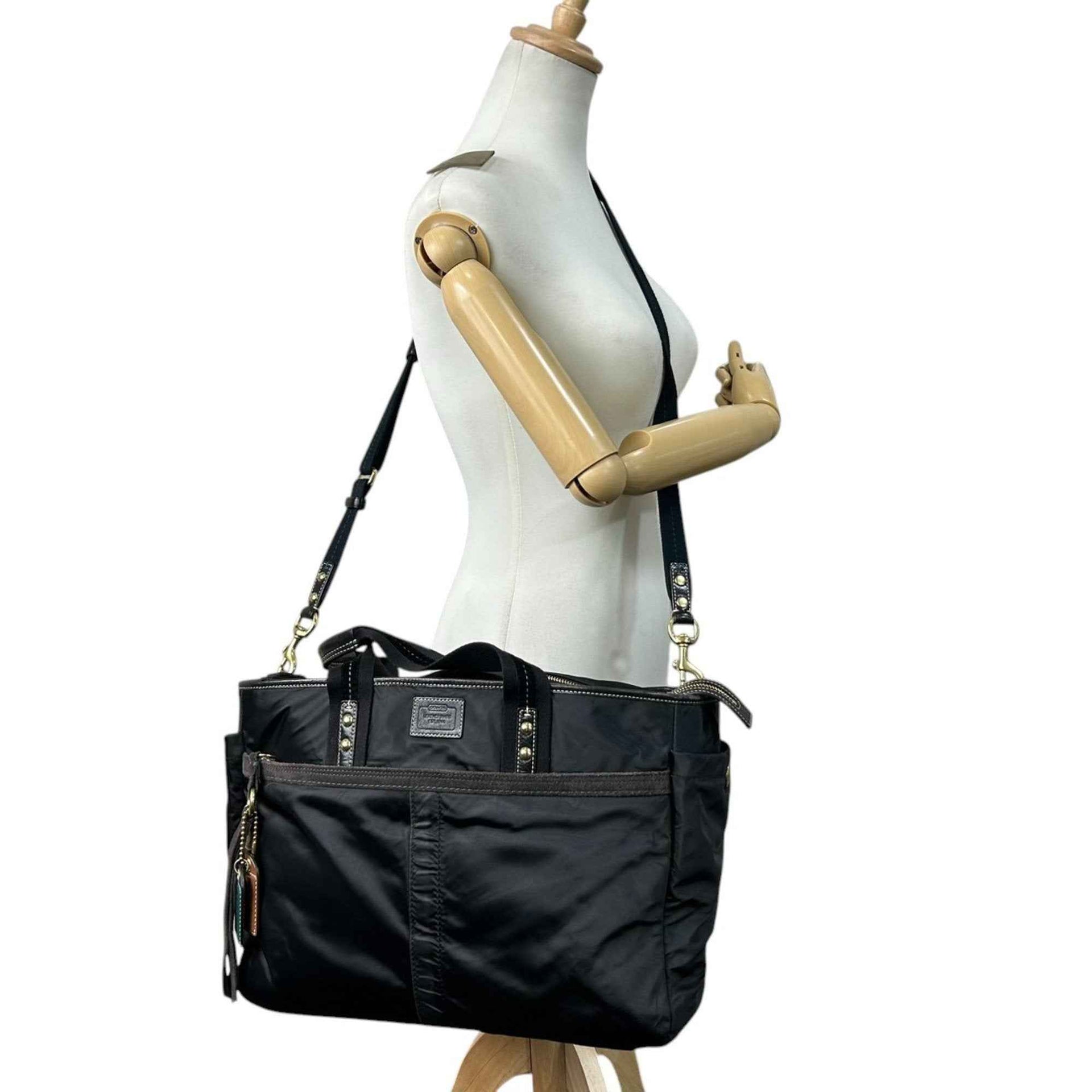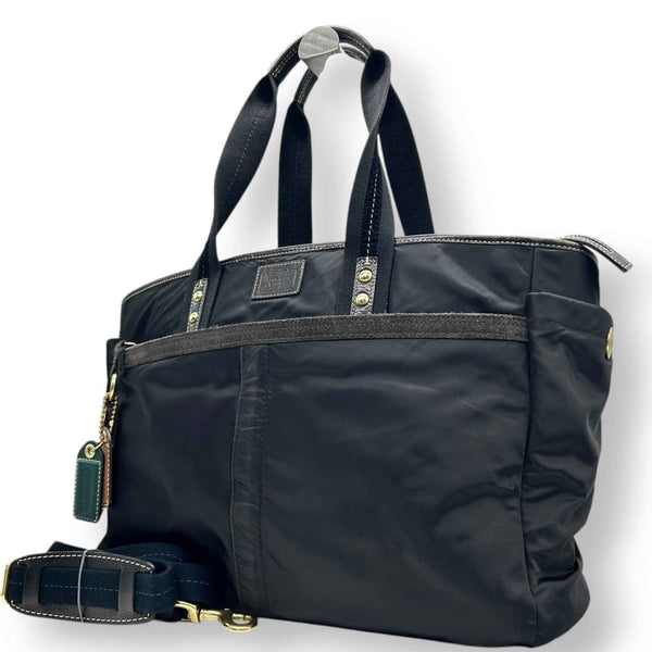 Coach Hamptons Weekend Tote Bag 10102, Nylon and Leather, Black, 2-Way Business Bag, Crossbody Size 57