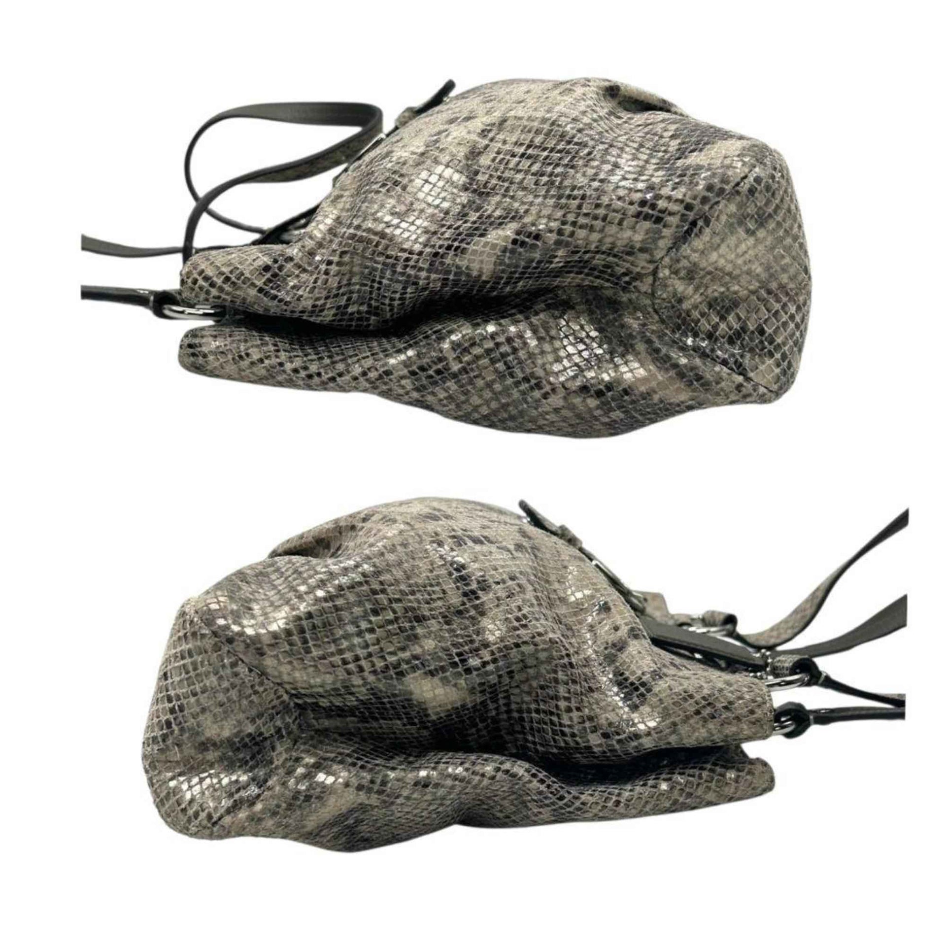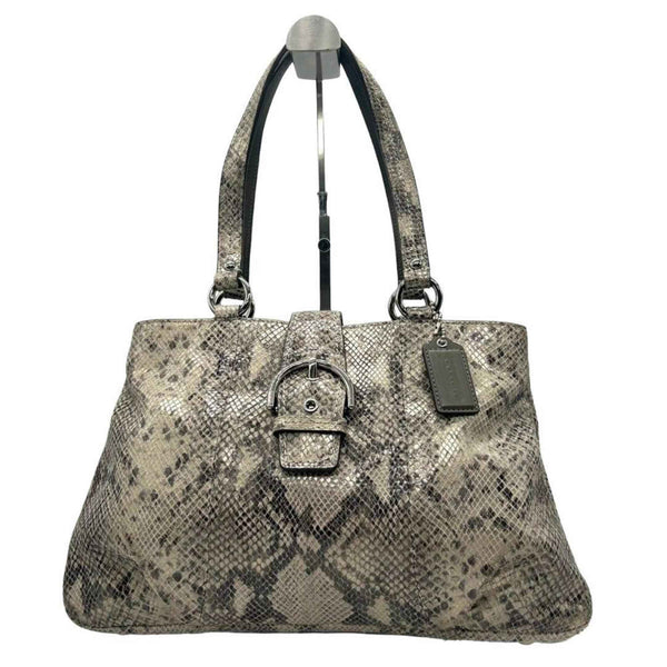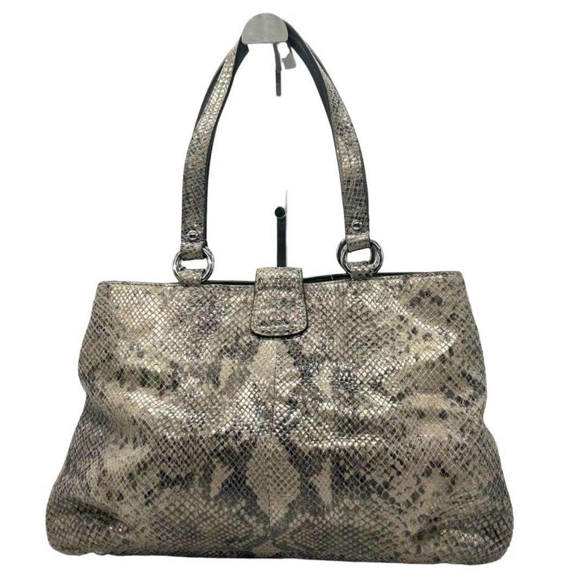 Coach handbag, gray embossed leather, one-shoulder tote bag, silver hardware, logo tag, F19679