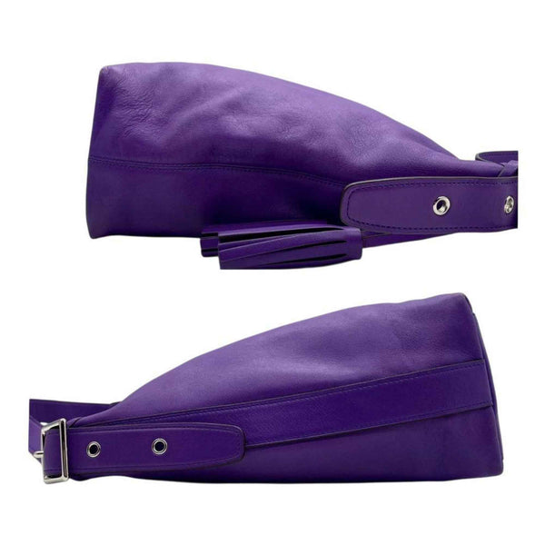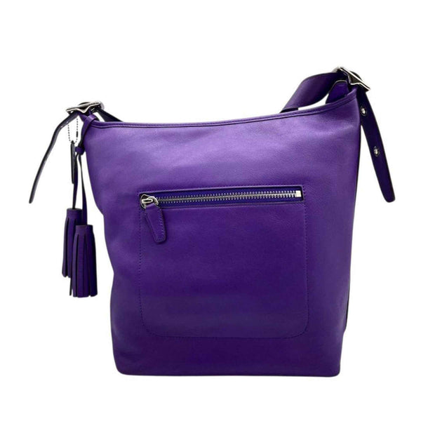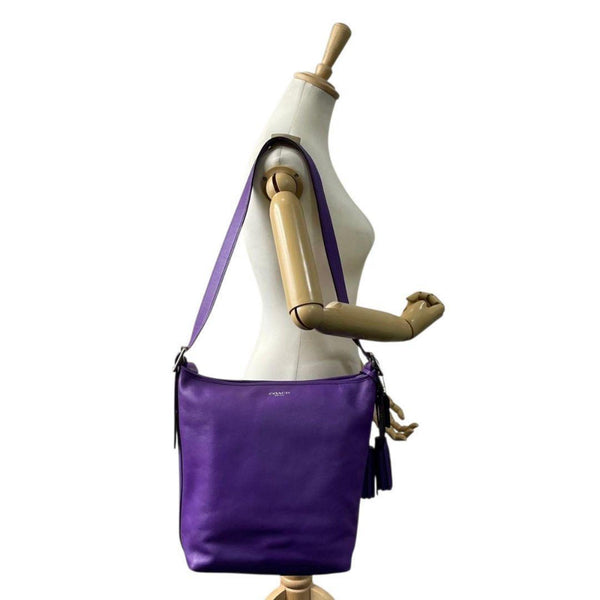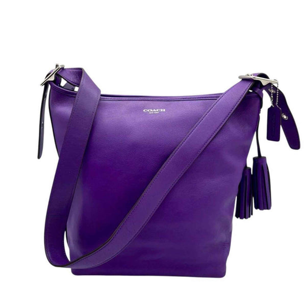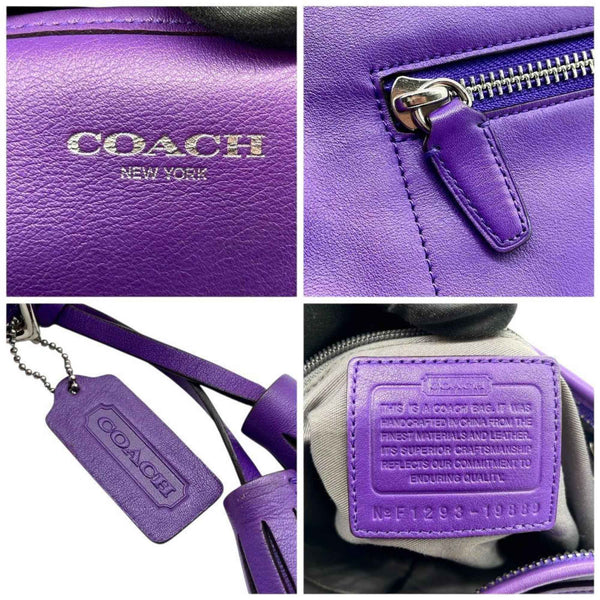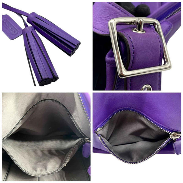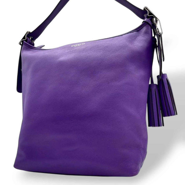Coach Legacy Leather Shoulder Bag in Purple (u6 19889) - Can be worn over the shoulder or as a tote handbag. Features tassel, silver hardware, and COACH logo tag.