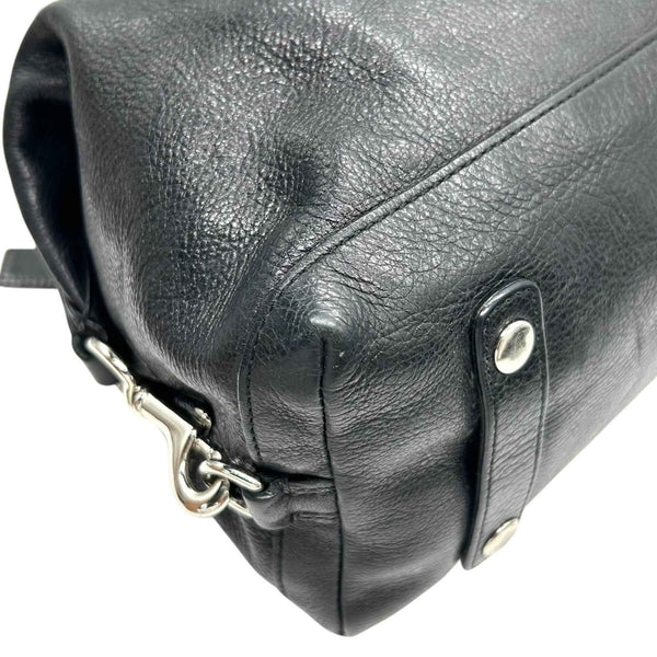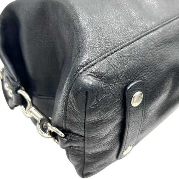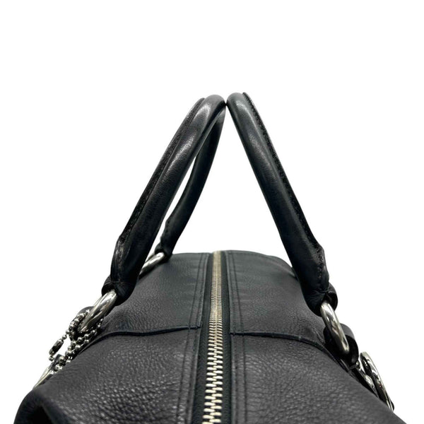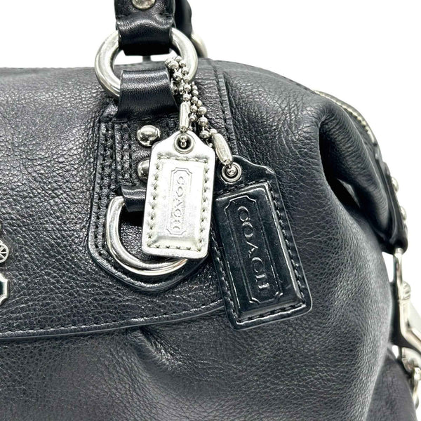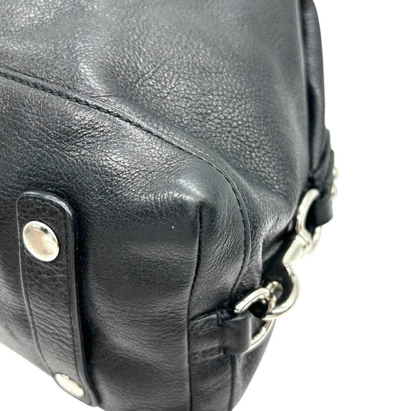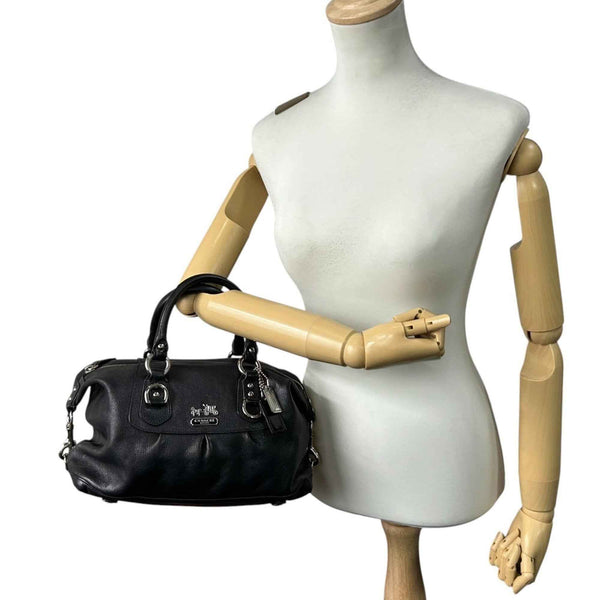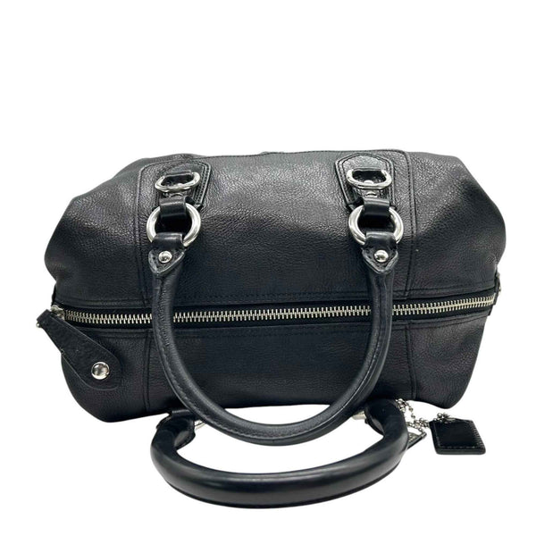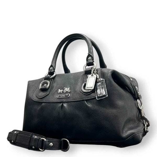 COACH Madison 2-Way Handbag/Shoulder Bag 12937 Satchel in Black Pebbled Leather with Gathered Horse and Carriage Logo, Women\'s, Size s86