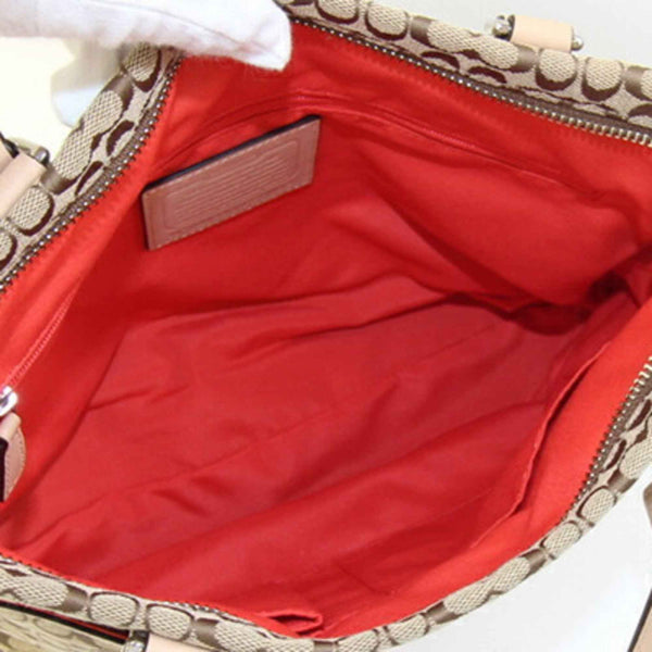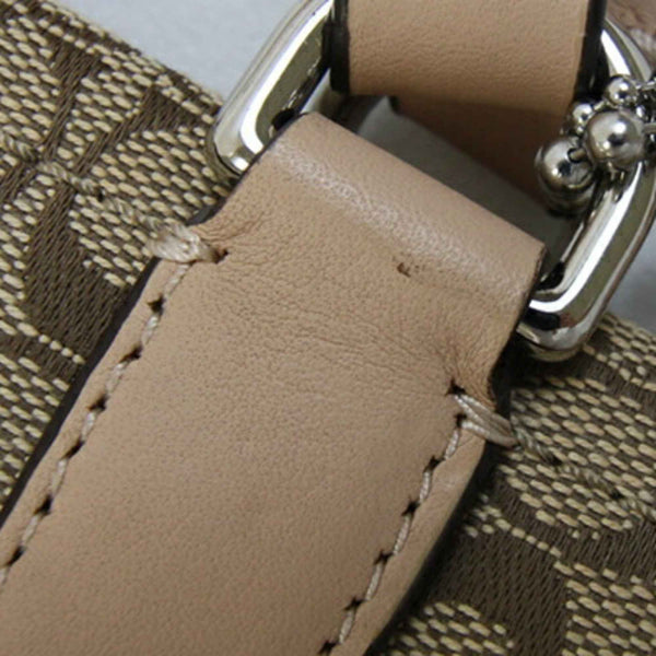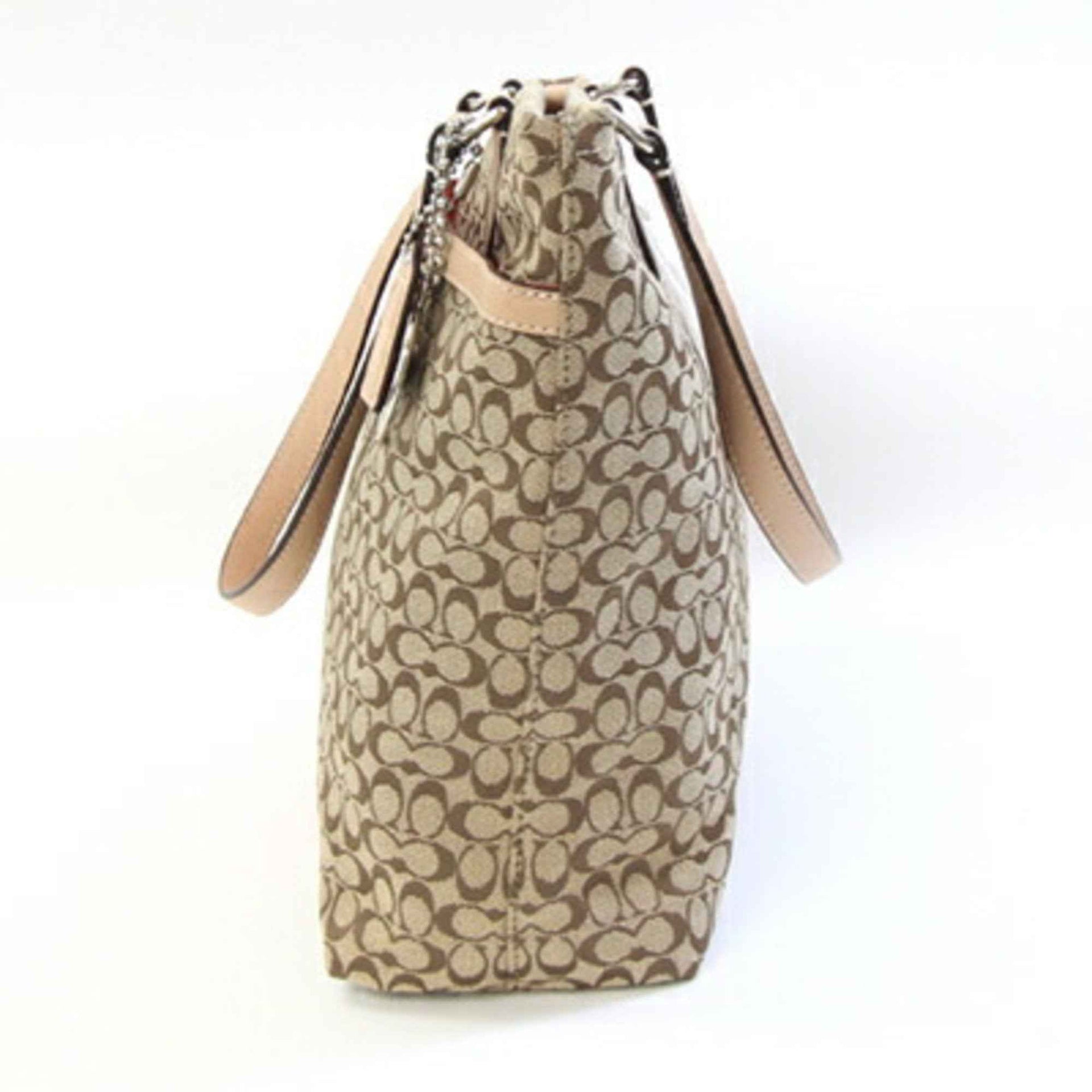 Coach Mini Signature Stripe File Tote Bag F27008 Khaki Beige Canvas Leather Shoulder Women\'s COACH