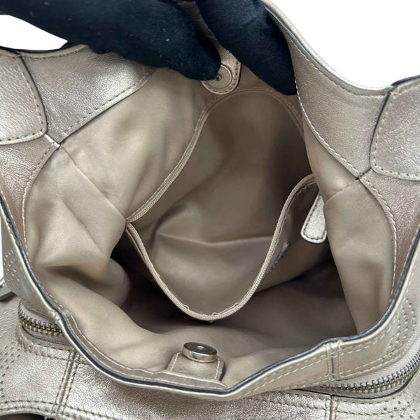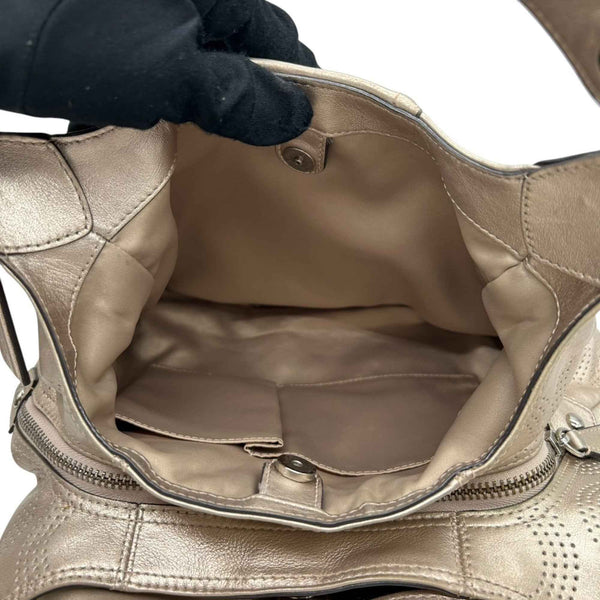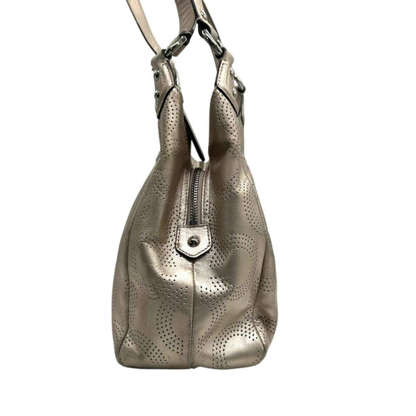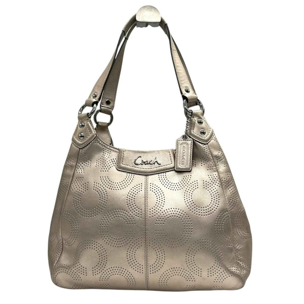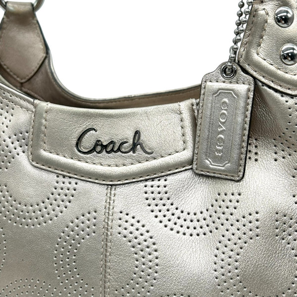COACH One-Shoulder Shoulder Bag F23602 Perforated Leather with Op Art Signature in Gold and Champagne Gold, Women\'s, Size 99
