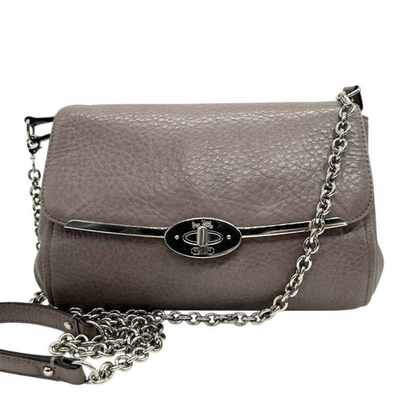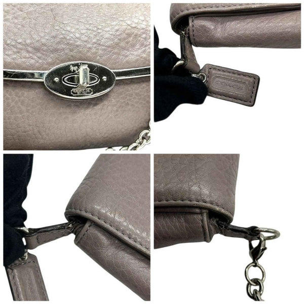 Coach Shoulder Bag, Gray, Chain, Turnlock, S23, Leather, Flap, Silver Hardware, Crossbody Women\'s