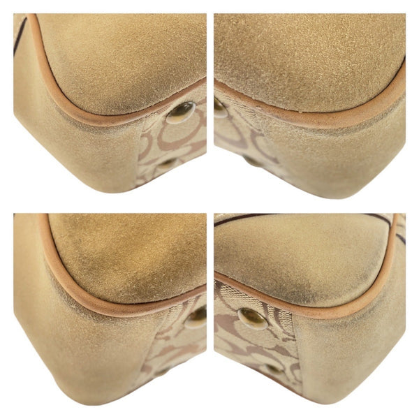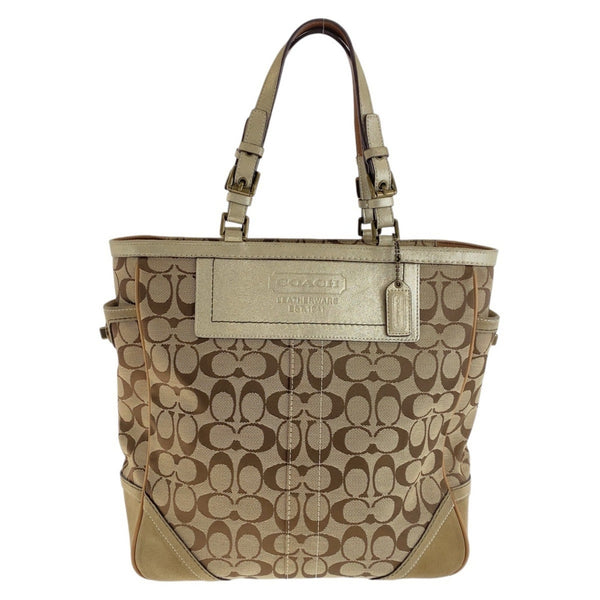 COACH Signature Beige Gold Hardware Canvas Tote Bag Shoulder for Women