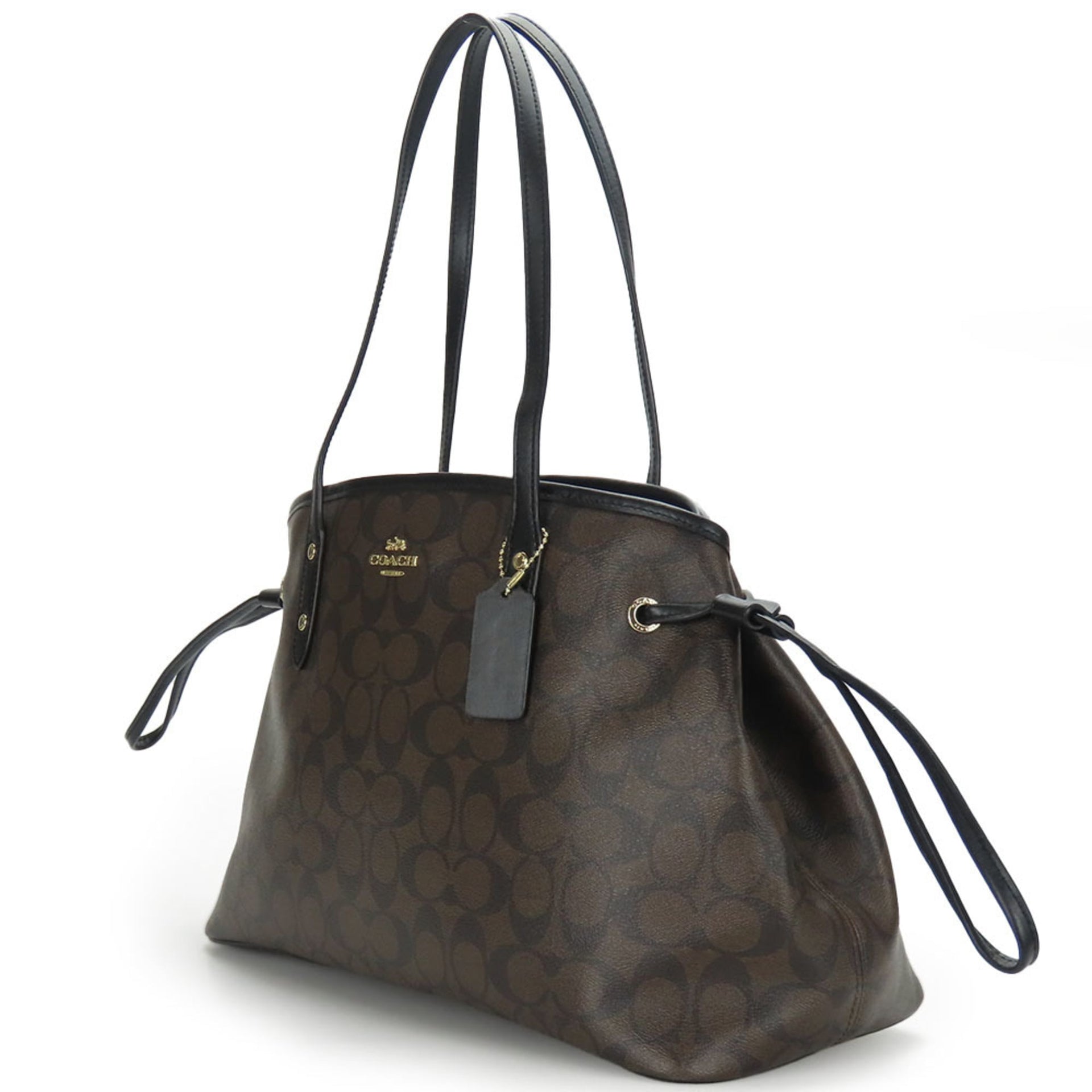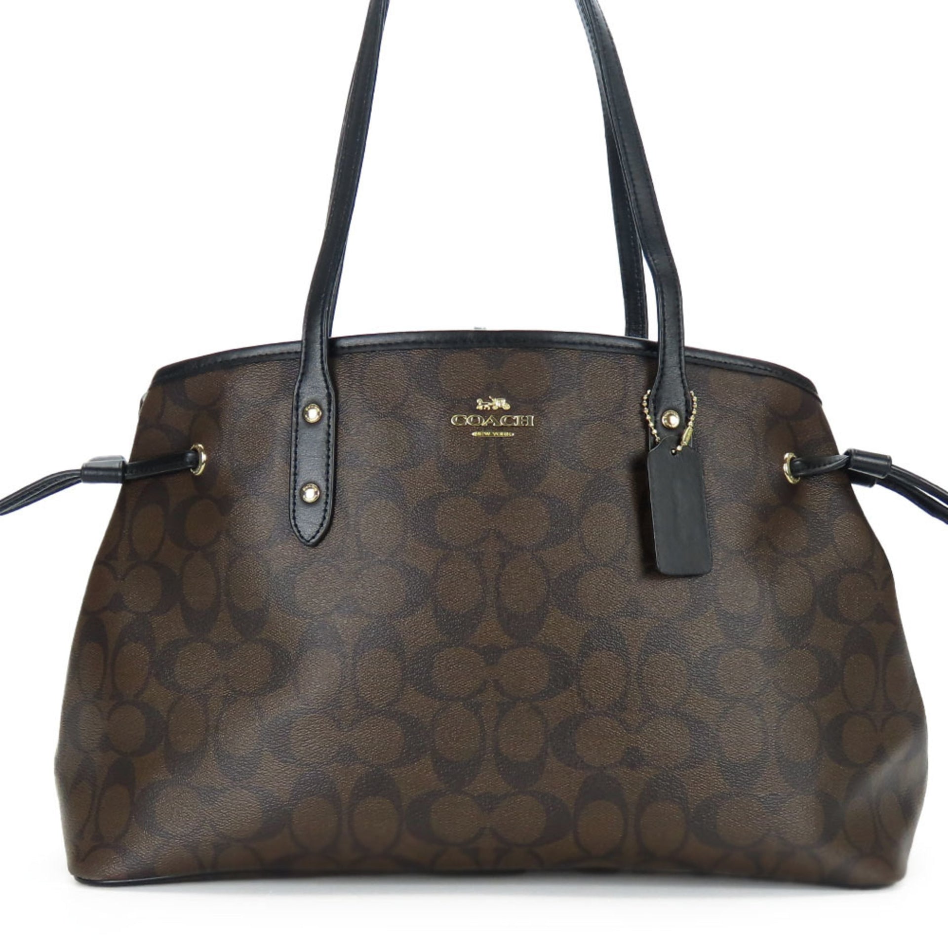 Coach Tote Bag F57842 Signature Leather Black Dark Brown Women\'s COACH
