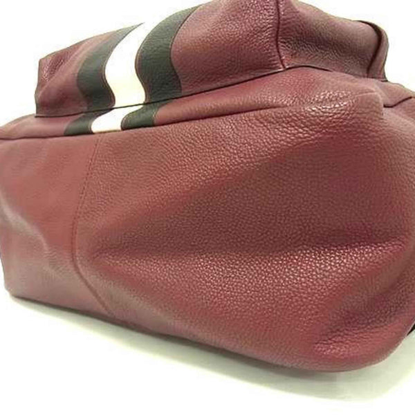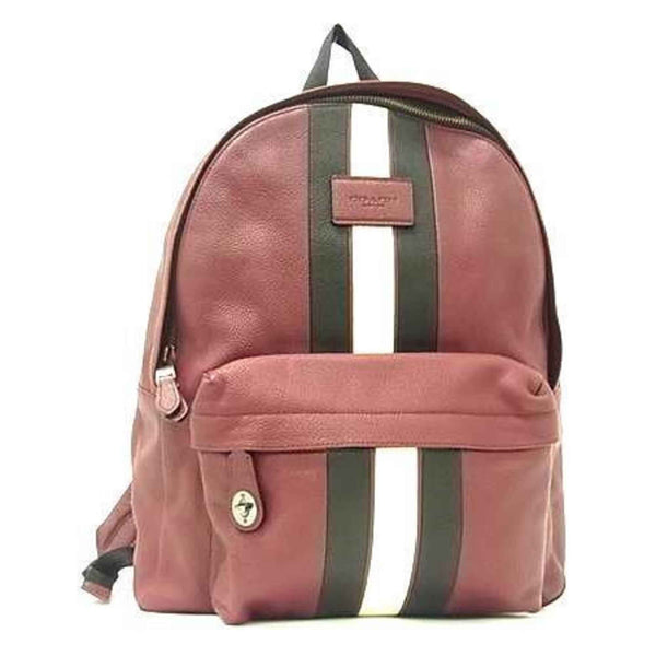 COACH Varsity Stripe Backpack 72313, Bordeaux, White, Black Leather, Men\'s and Women\'s