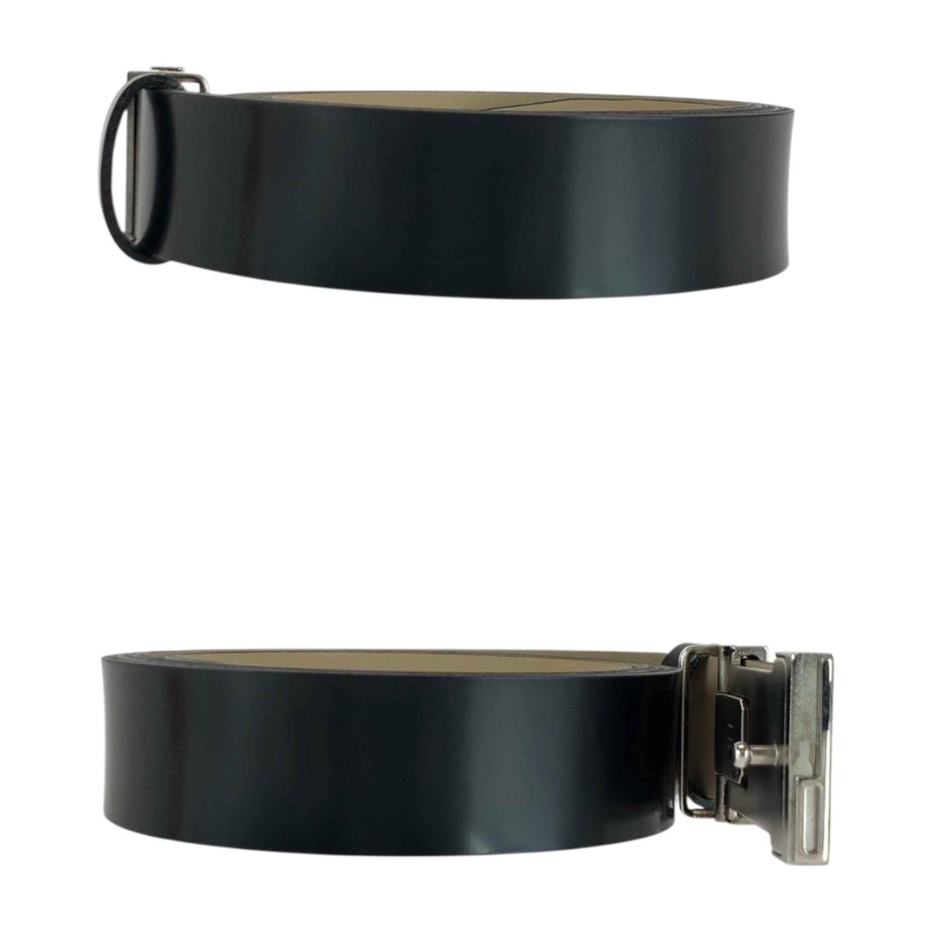 Dunhill 112cm 44in Black Leather Belt with Silver Hardware Buckle for Men