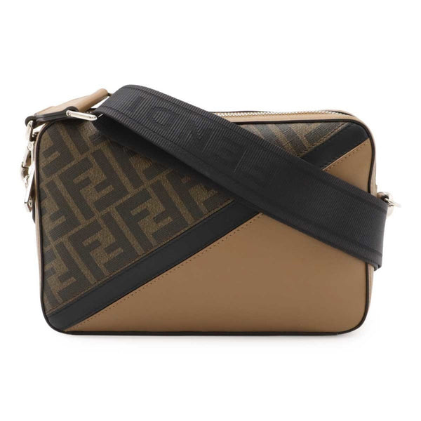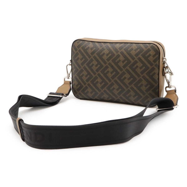 FENDI Diagonal Zucca Pattern Camera Case Shoulder Bag Clutch Coated Canvas Beige Brown 7M0286