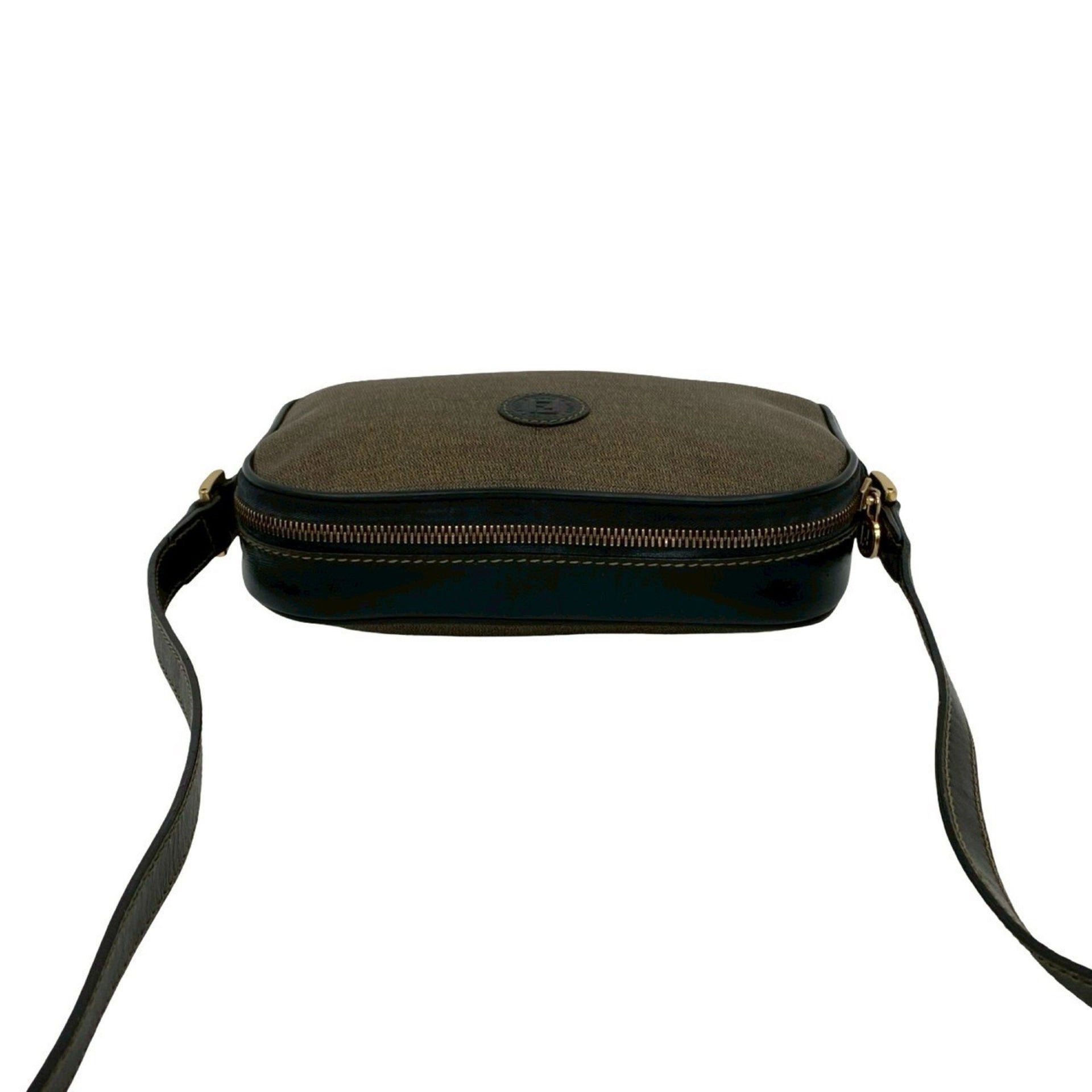 FENDI FF logo motif leather mini shoulder bag/pouch/sacoche in brown 54365