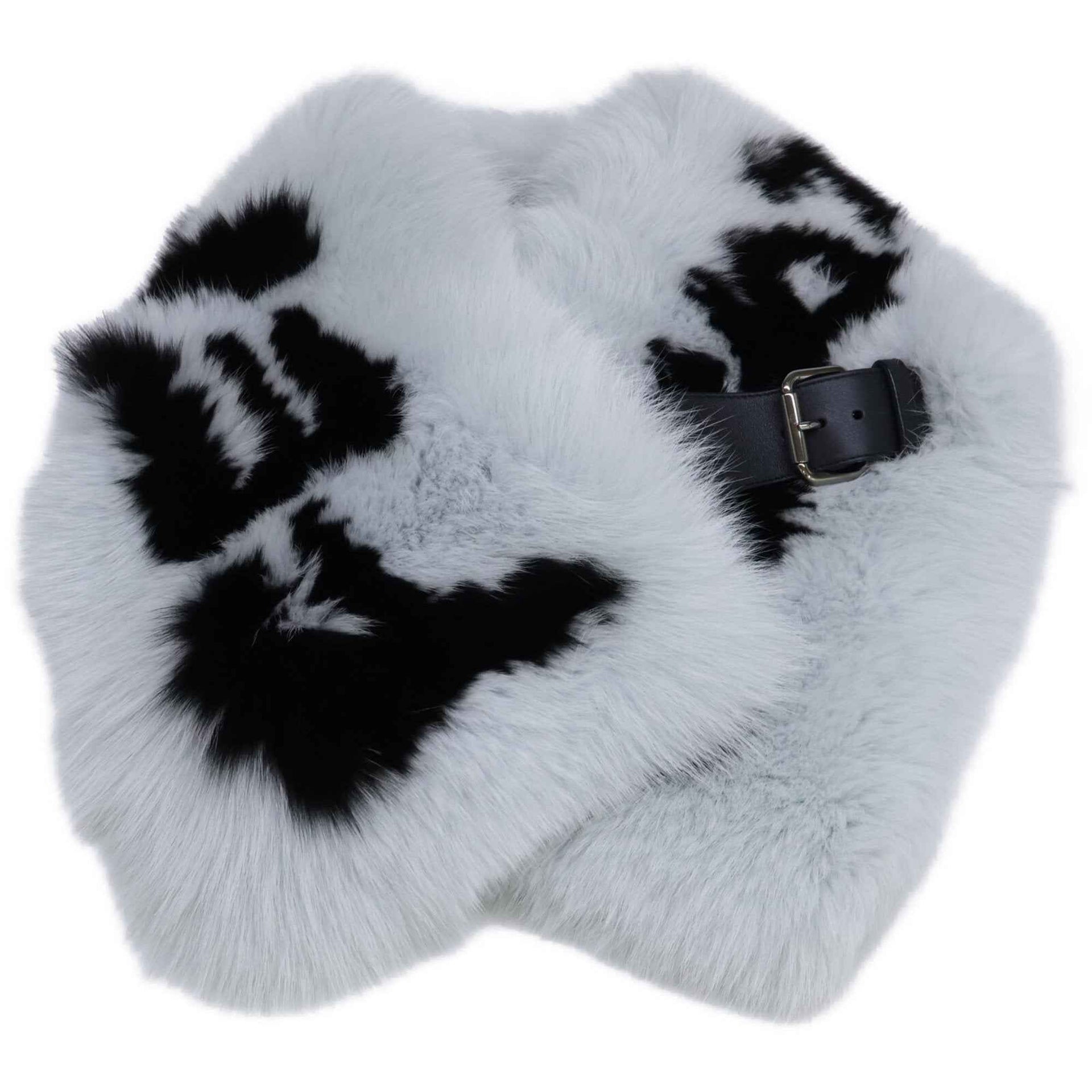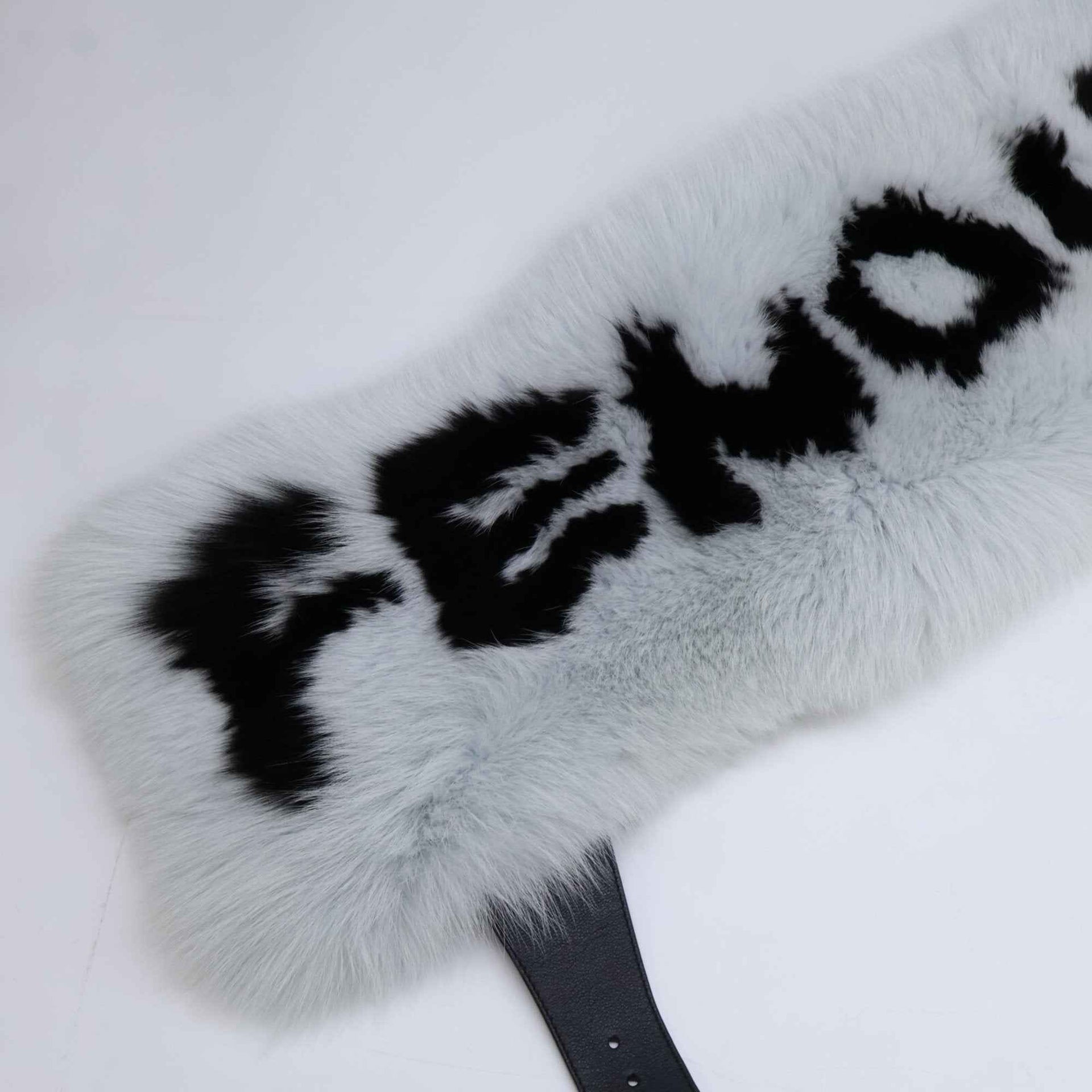 FENDI FNL121 1UY F07SQ Fox Fur Silk and Leather Tippet Belt in HERON+BLACK for Women