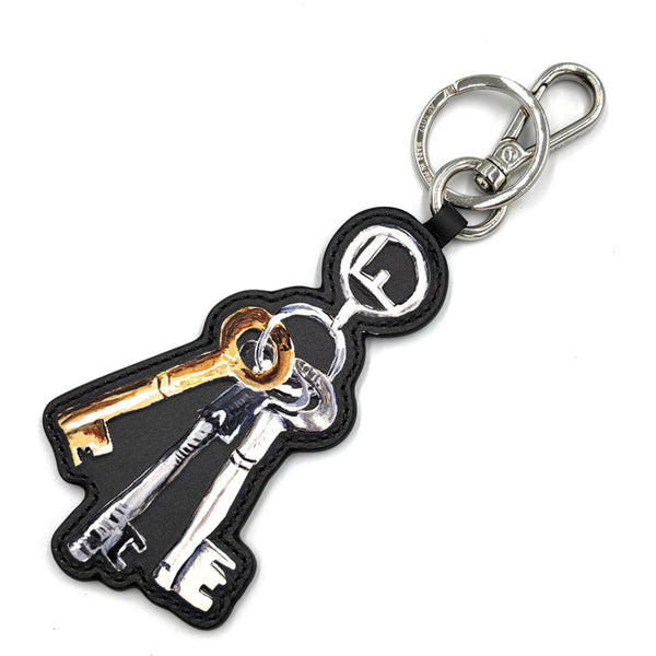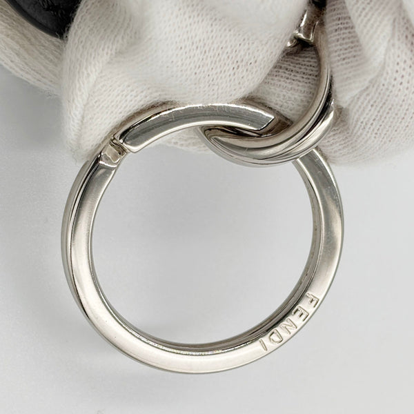 FENDI Key Motif Charm Keychain Black White Leather Bag Ring Women Men