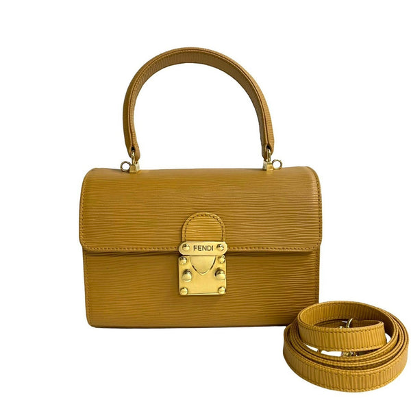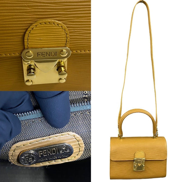 FENDI logo hardware, genuine Epi leather, 2-way handbag, mini tote bag, shoulder beige, 29785