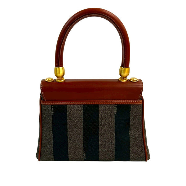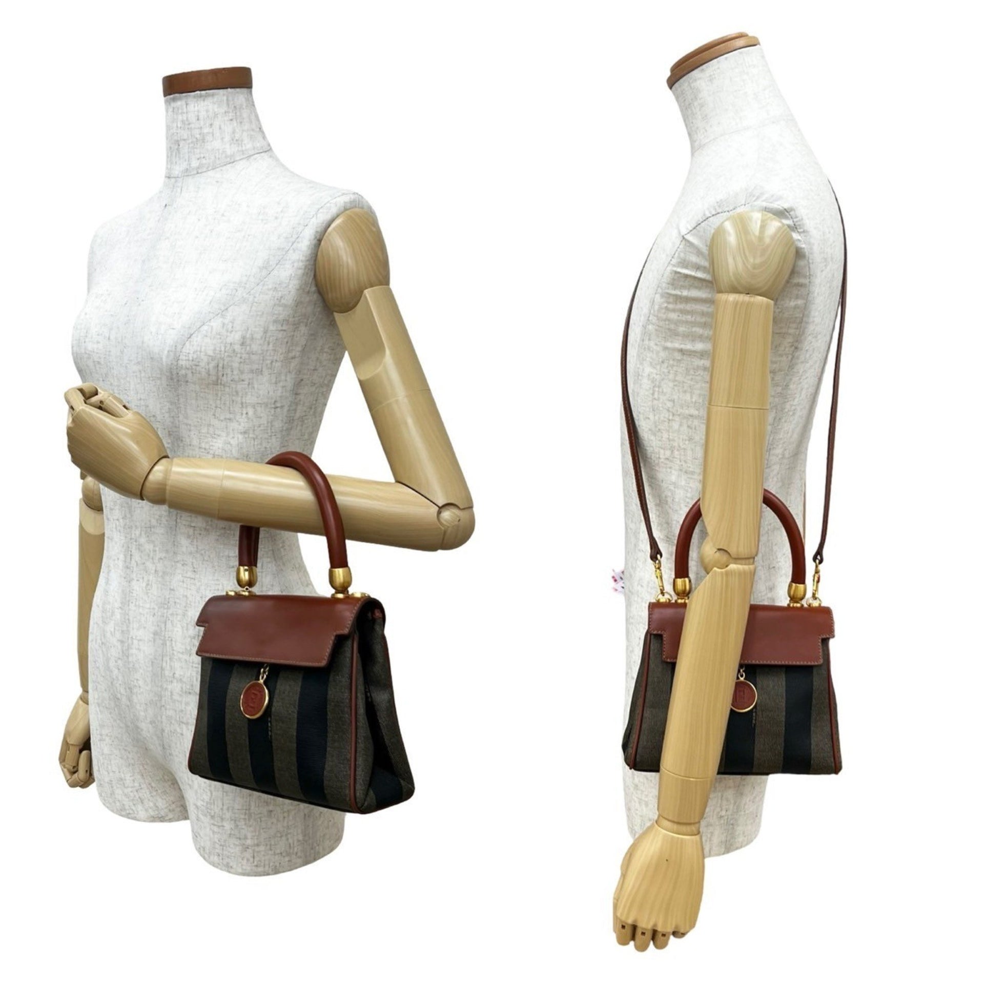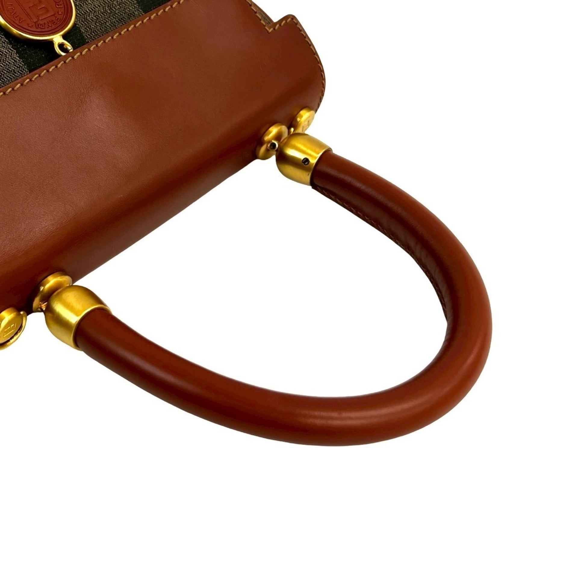 FENDI Pecan Print FF Logo Charm Leather 2-Way Mini Shoulder Bag/Handbag Brown 40925