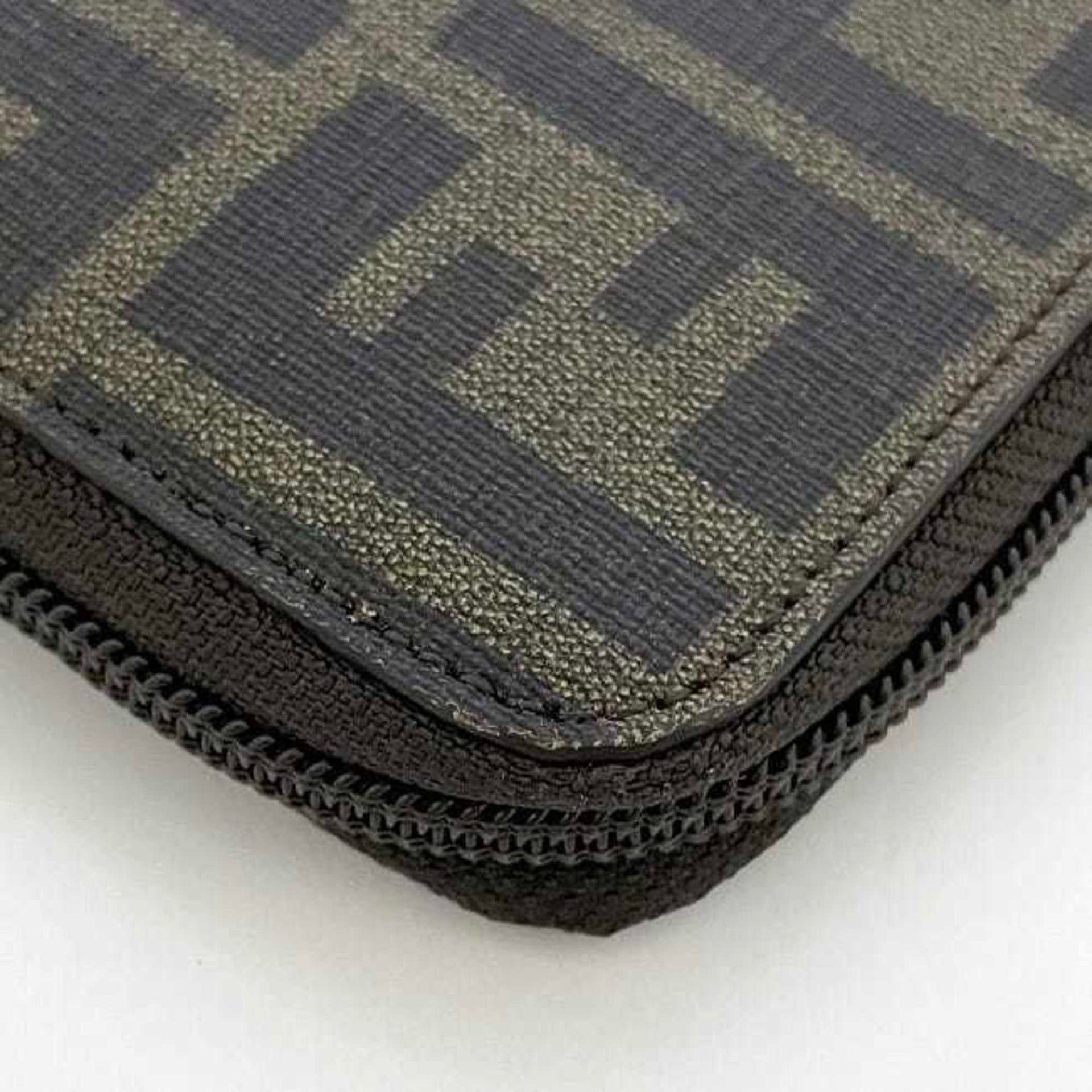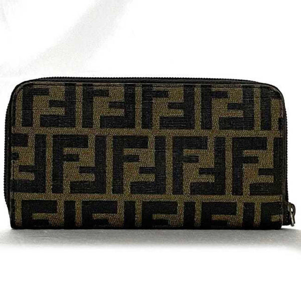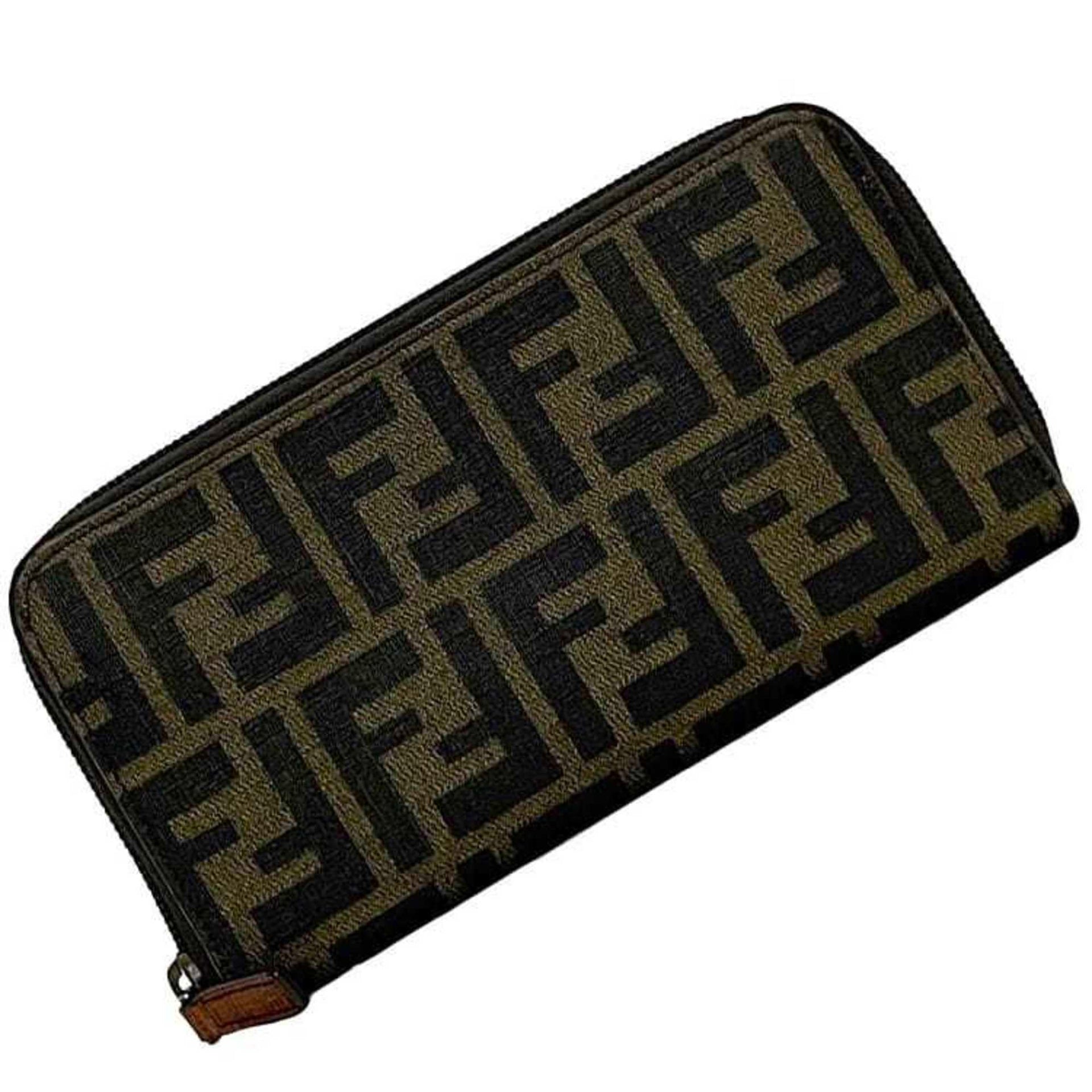 Fendi Round Long Wallet ec-23576 Khaki Green Zucca PVC Leather FENDI FF Dark Pattern Men\'s Women\'s