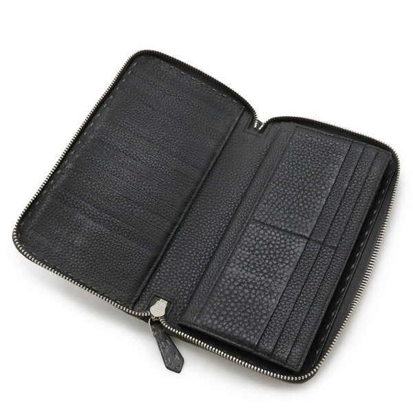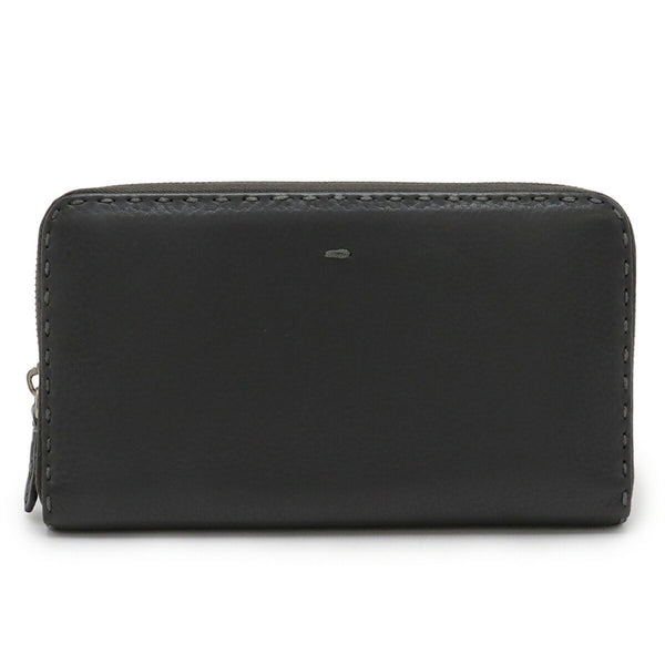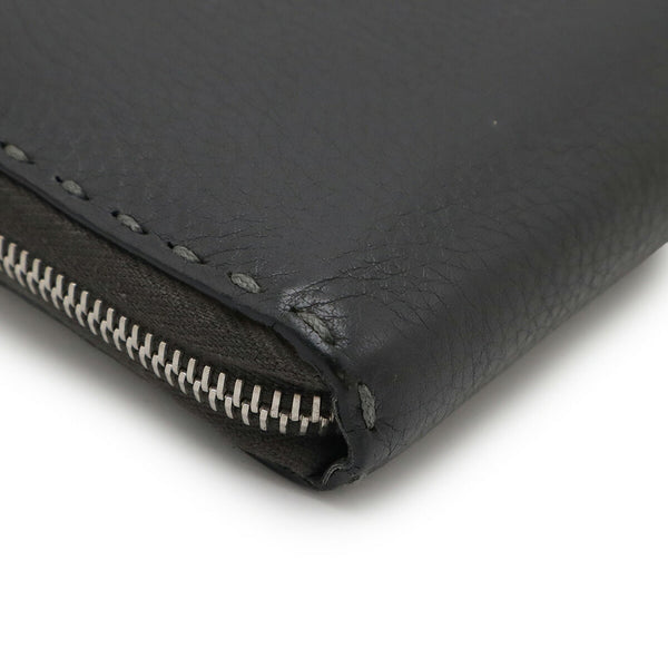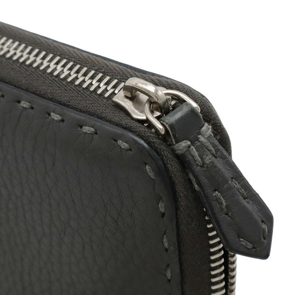 FENDI Selleria Long Wallet Round Leather Grey 7M0198