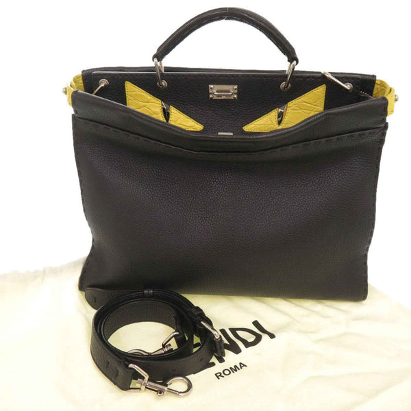 Fendi Selleria Peekaboo Monster Bugseye Leather Black 2-Way Handbag/Shoulder Bag 0268FENDI