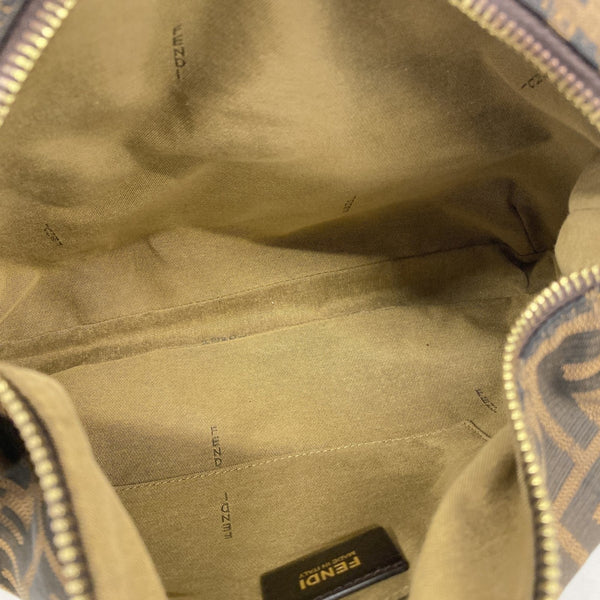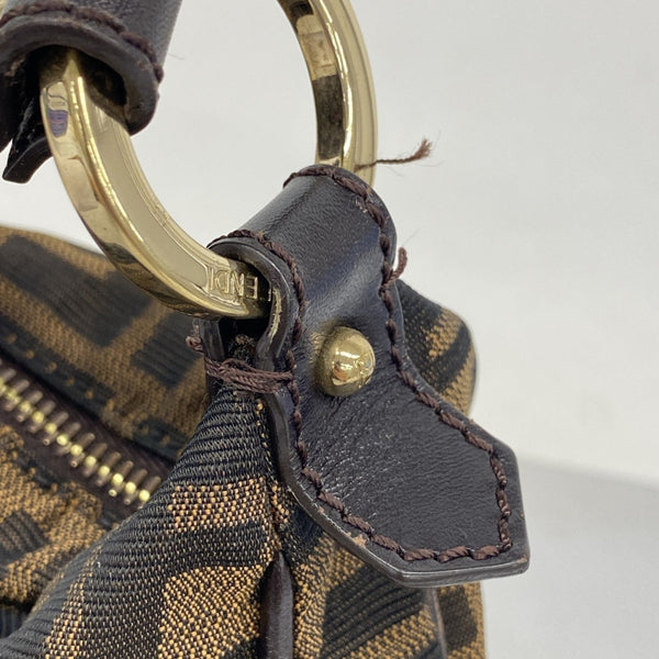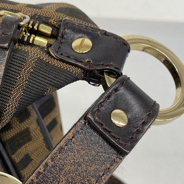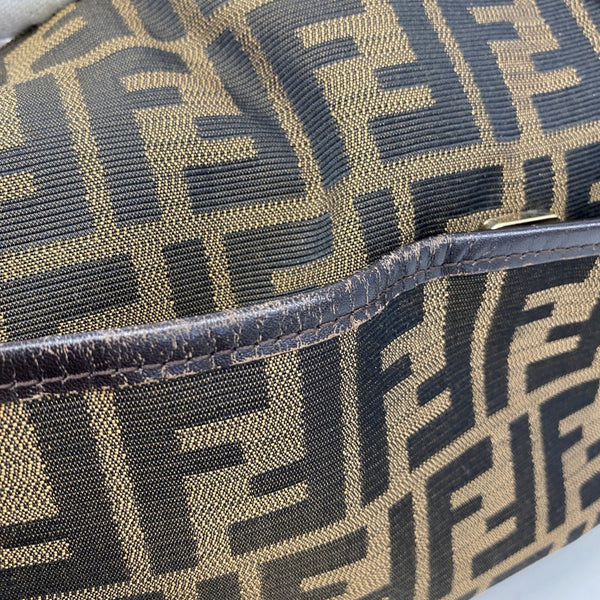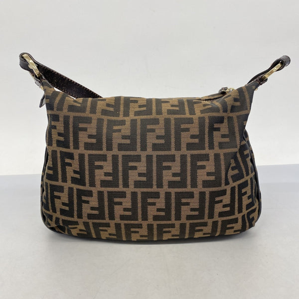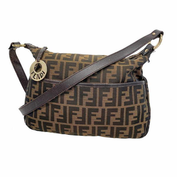 Fendi Shoulder Bag Zucca Nylon Canvas Brown Champagne Women's