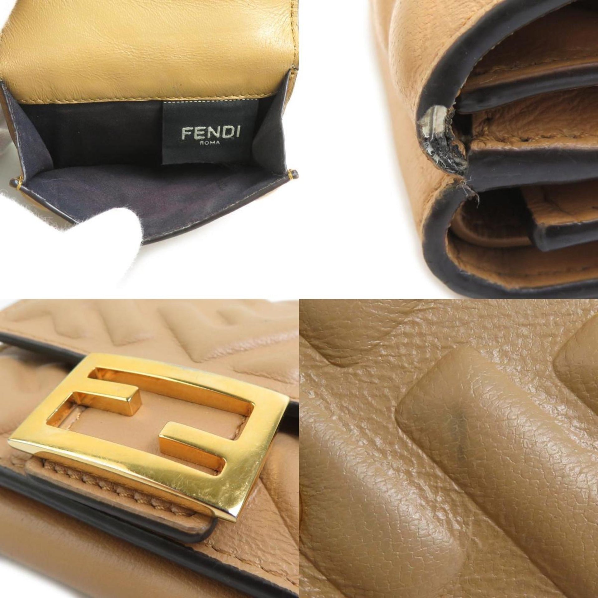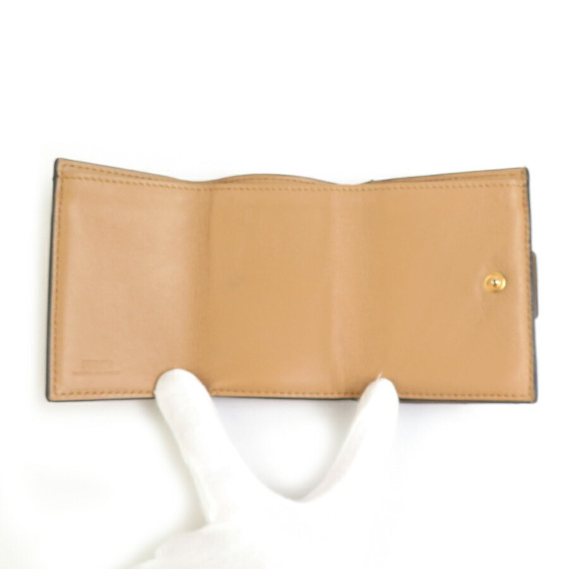 FENDI Tri-fold Wallet Baguette Micro Leather Beige Men\'s Women\'s 8M0395-AAJD r10465g