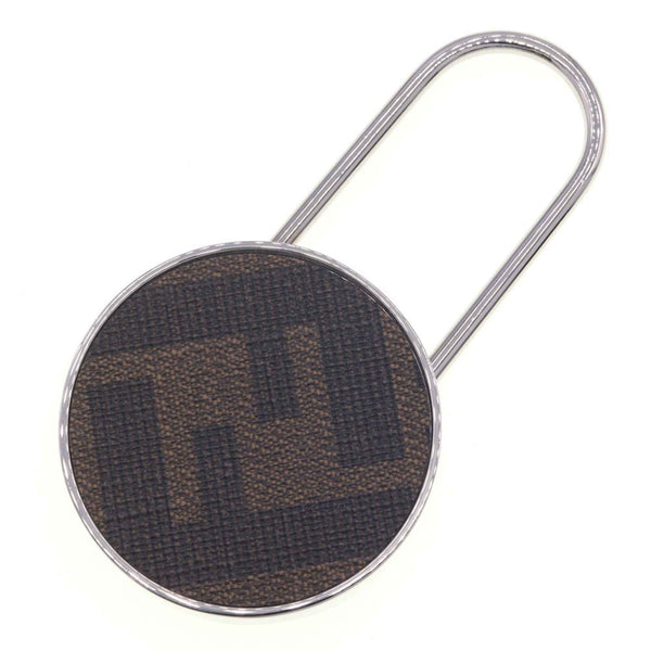 Fendi Zucca Keychain 7AP068 Silver Khaki Metal PVC Key Ring Bag Charm FENDI
