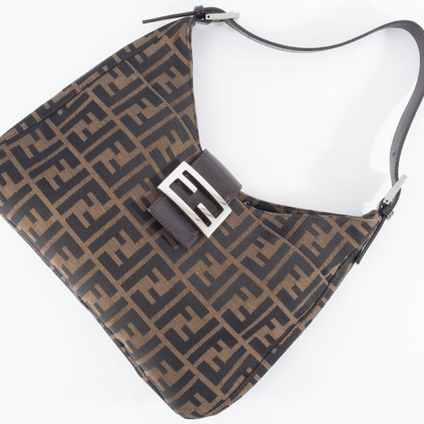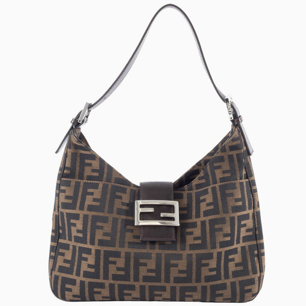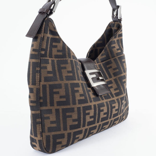 FENDI Zucca Shoulder Bag 26569 Canvas/Leather Brown Women's Hobo