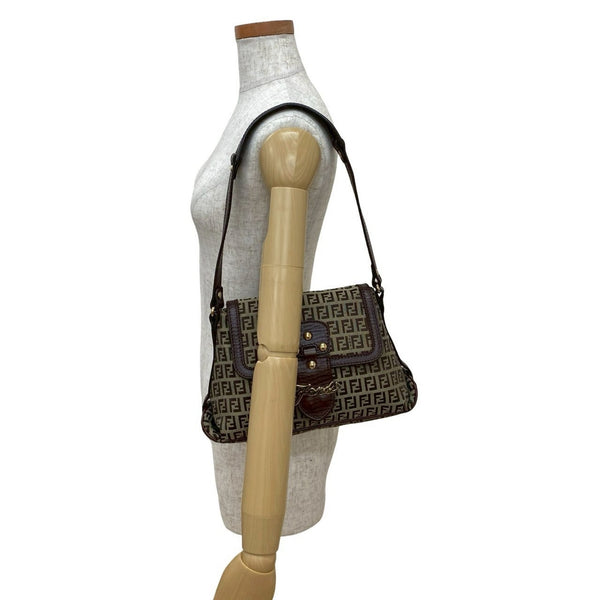 FENDI Zucchino pattern logo hardware leather nylon canvas semi-shoulder bag brown beige 07419