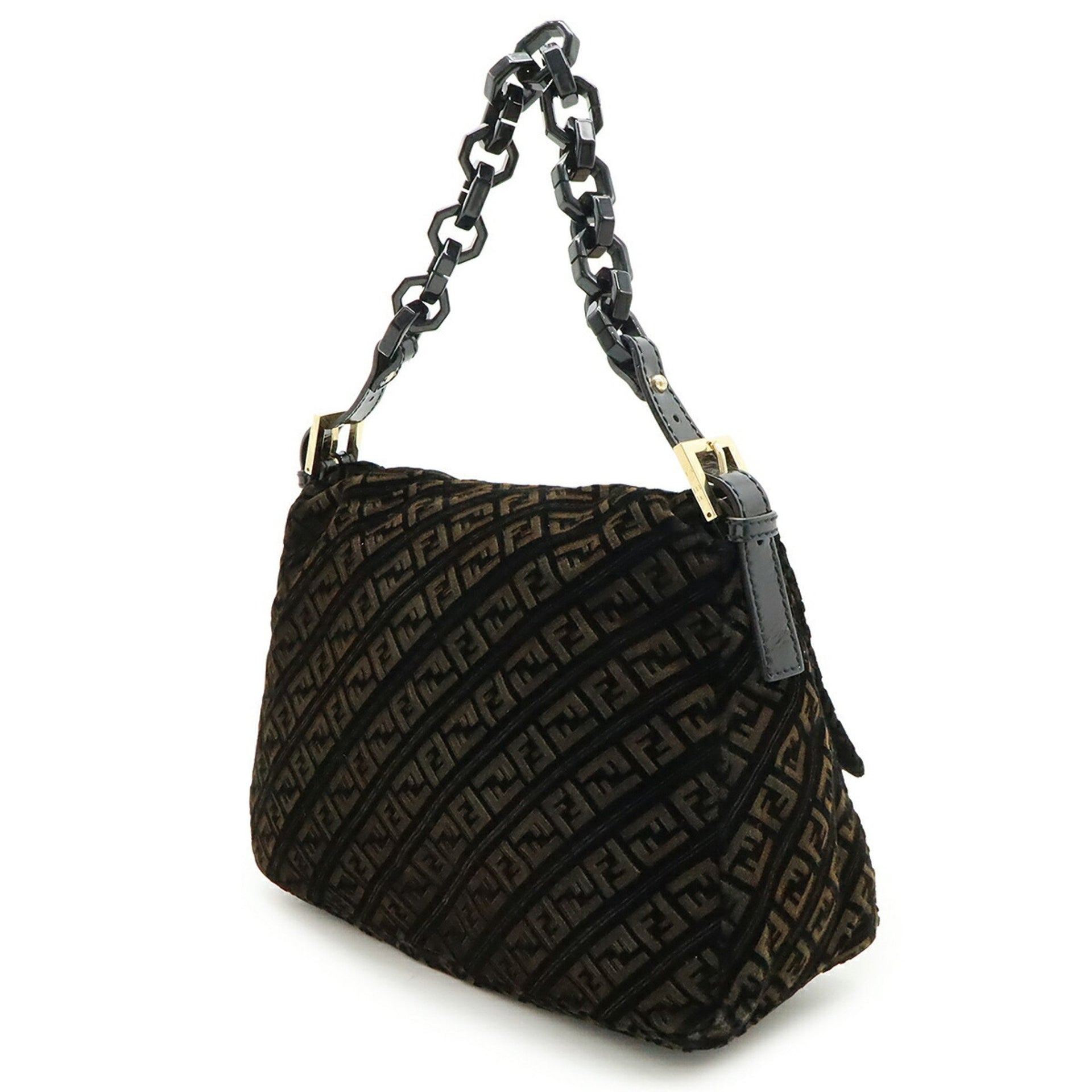 FENDI Zucchino Print Mamma Bucket Shoulder Bag in Velvet and Patent Leather, Black Brown, 8BR001