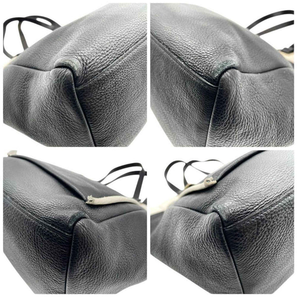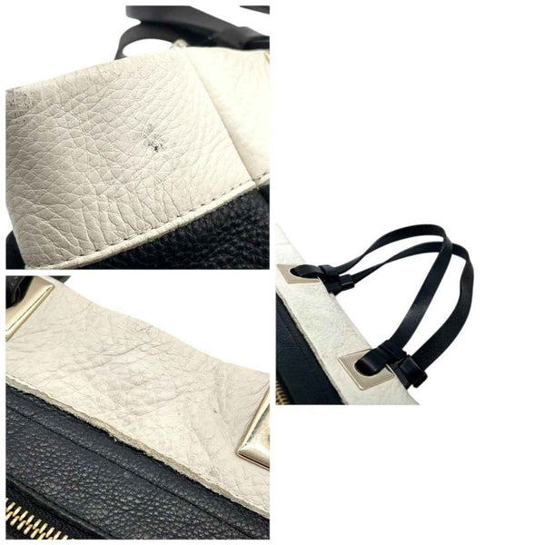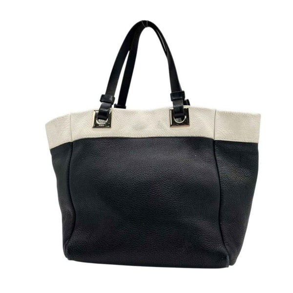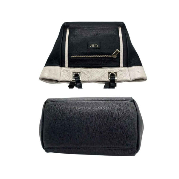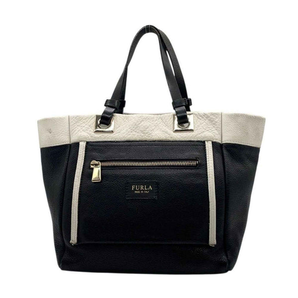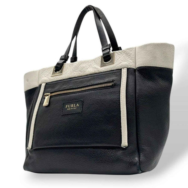 FURLA u13 Tote Bag in Black Two-Tone Leather with Logo Plate and Gold Hardware White