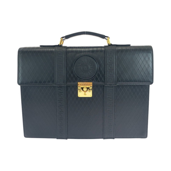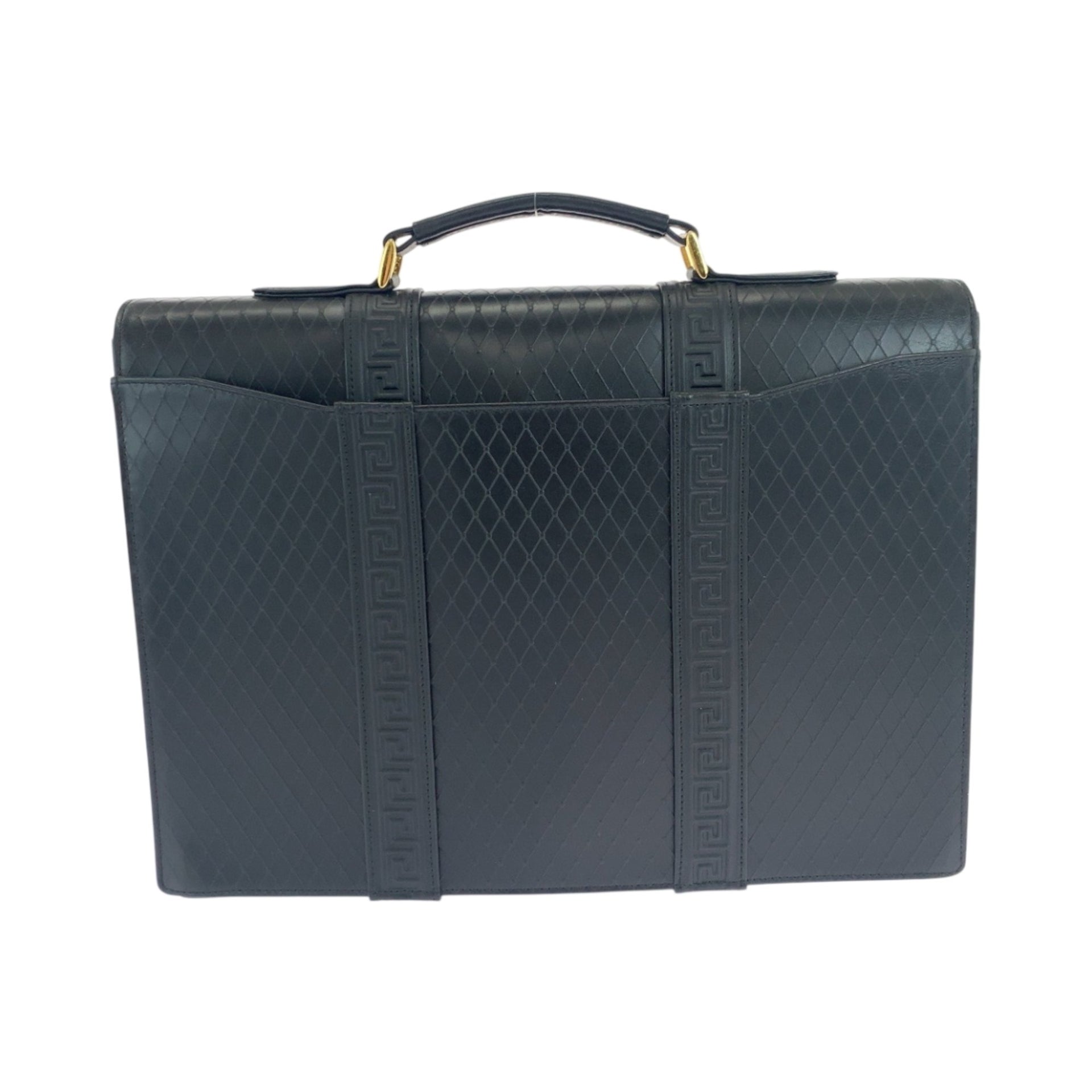 Gianni Versace Vintage Sunburst Black Leather Business Briefcase with Gold Hardware for Men