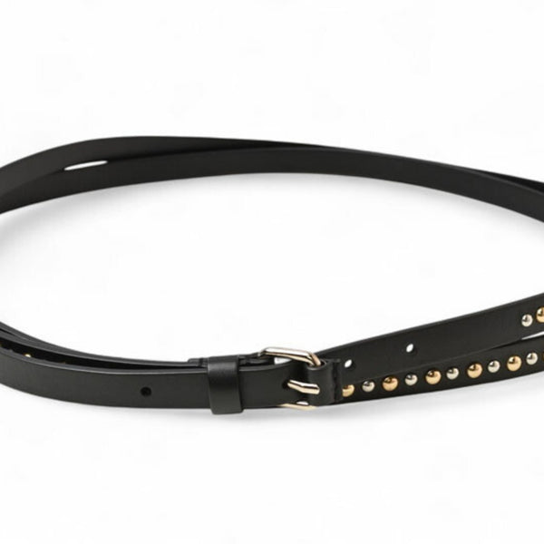 Givenchy Belt GIVENCHY Studded Double Leather Black Unisex Men Women Genuine