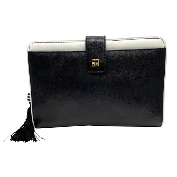 Givenchy Logo Hardware Clutch Bag, Two-Tone Black and White Leather with Tassel Fringe, S96