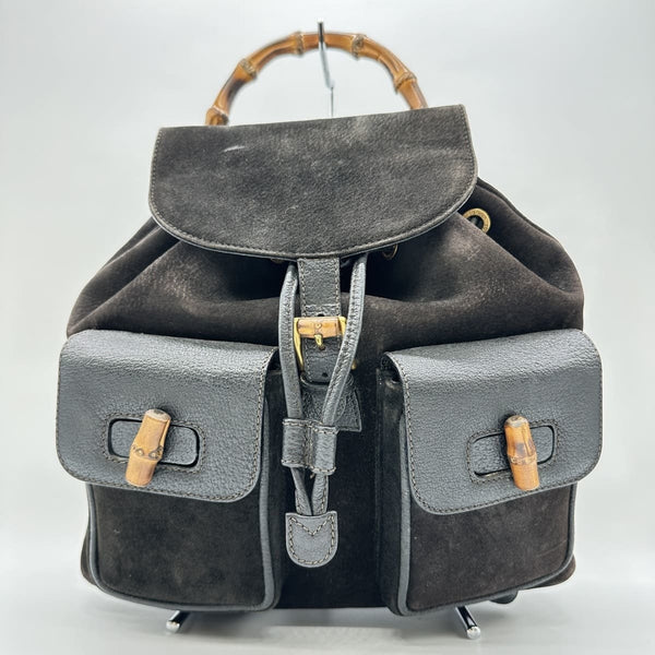 GUCCI 003/2058 Bamboo Backpack/Daypack in Black Suede for Men and Women