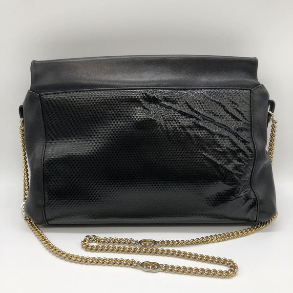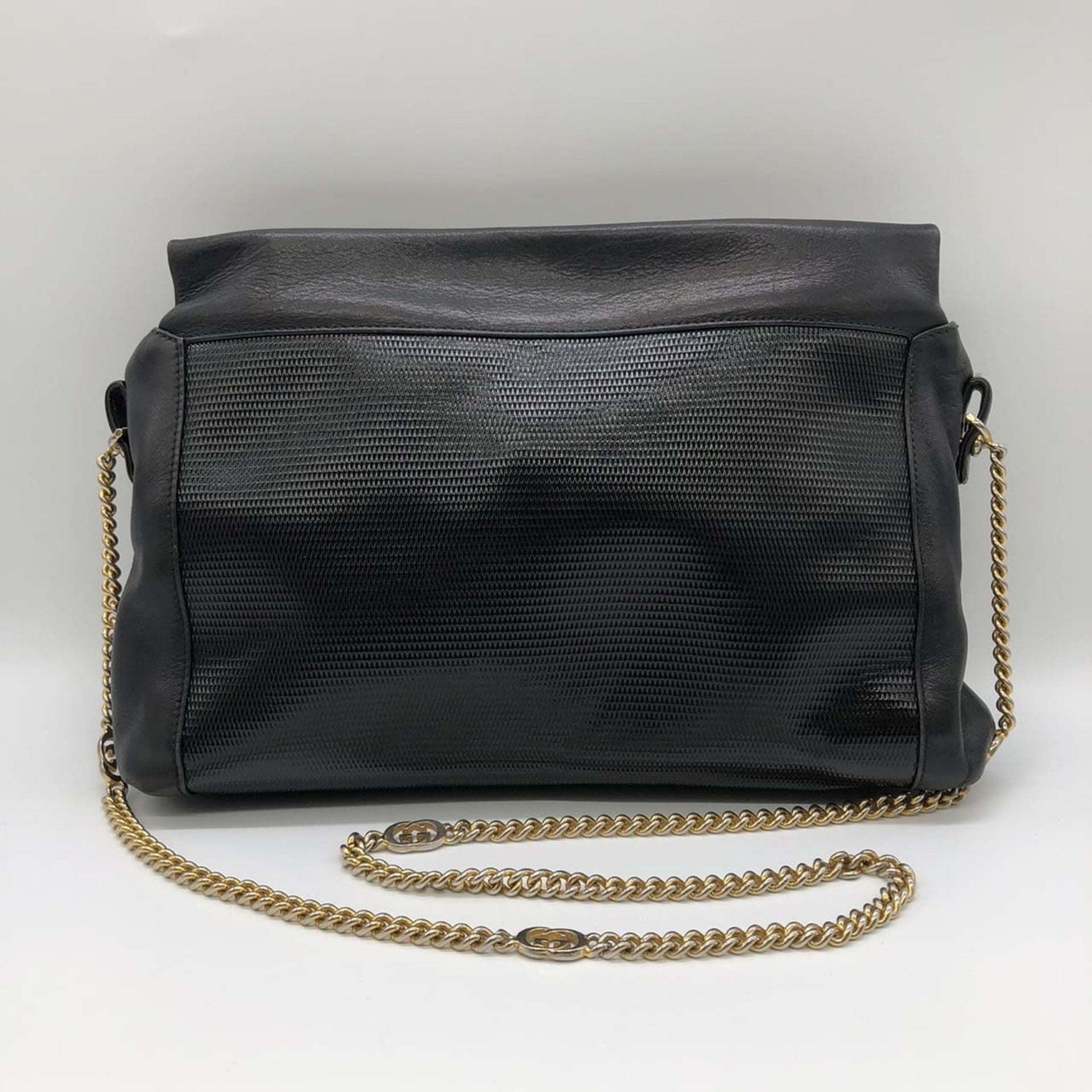 Gucci 004 109 Shoulder Bag with Chain Strap, Black Leather, for Men and Women