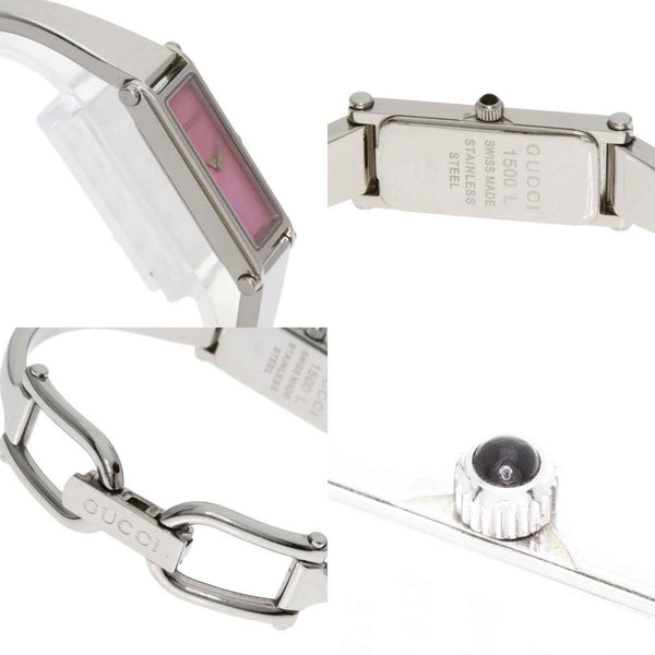 Gucci 1500L Square Face Bangle Pink Shell Watch Stainless Steel/SS Women\'s GUCCI