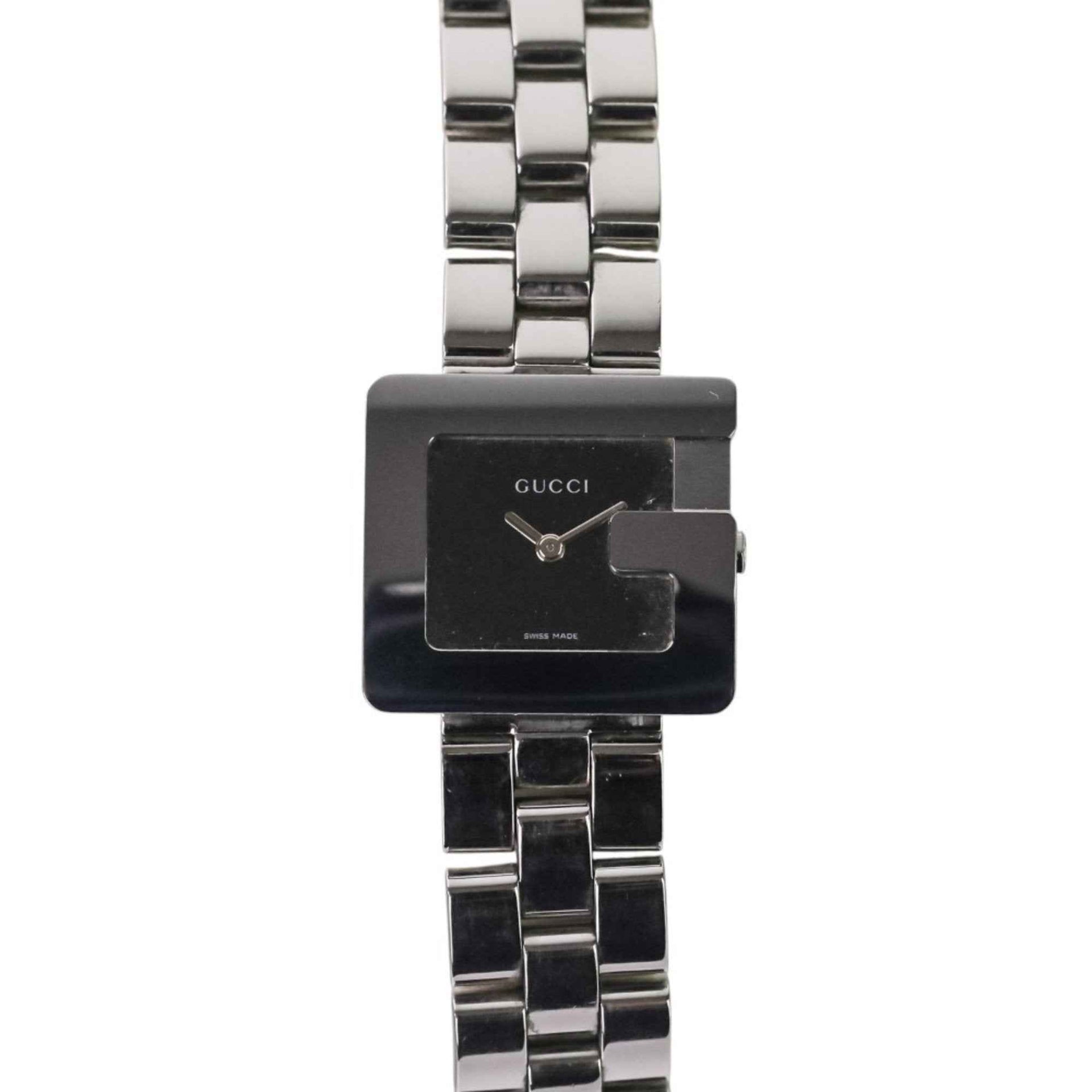 GUCCI 3600L G Logo Square Women\'s Watch with Black Dial and Silver Color