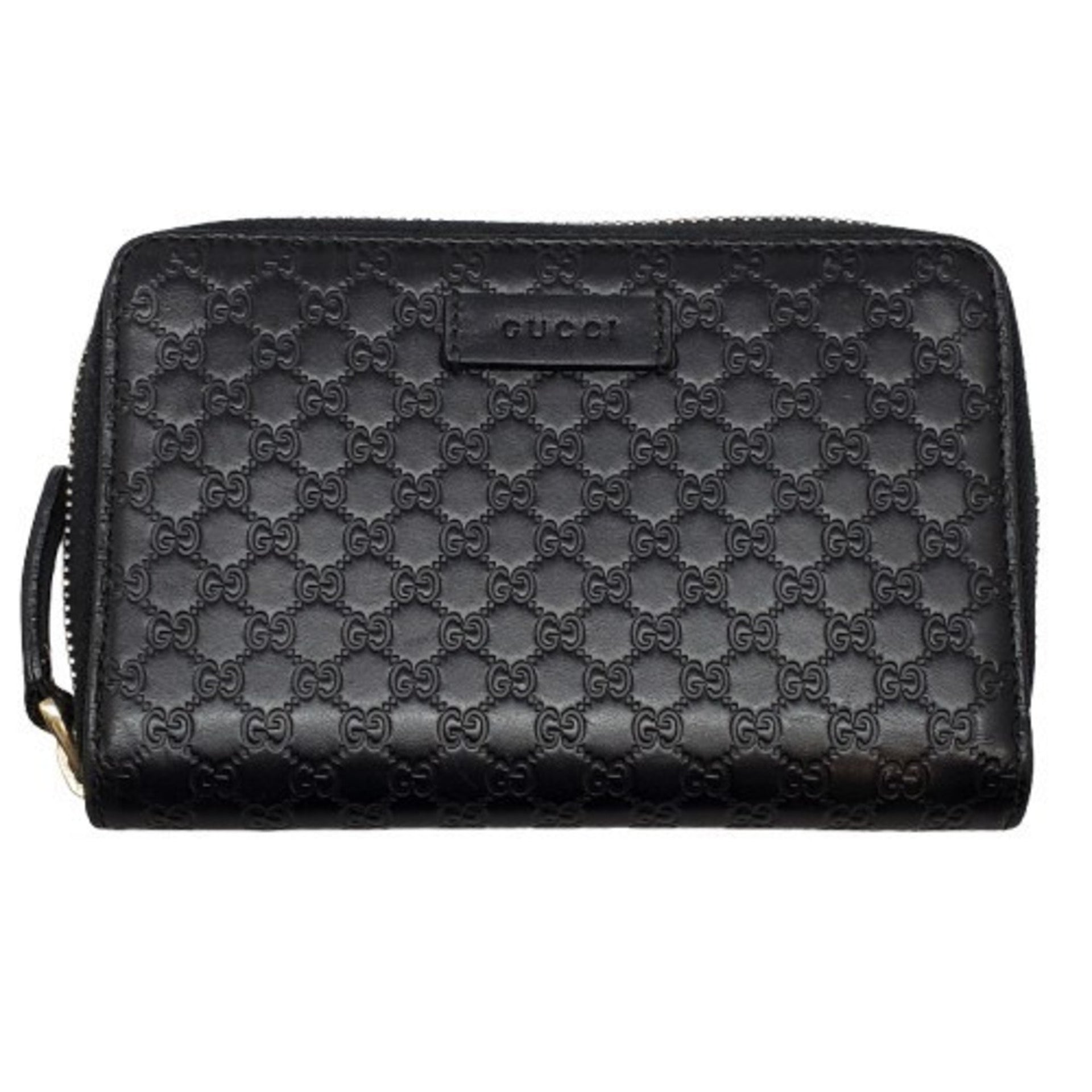 GUCCI 449423 Guccissima Round Compact Wallet Purse Men\'s Women\'s Accessories GG Pattern Black Outlet Kaizuka Store