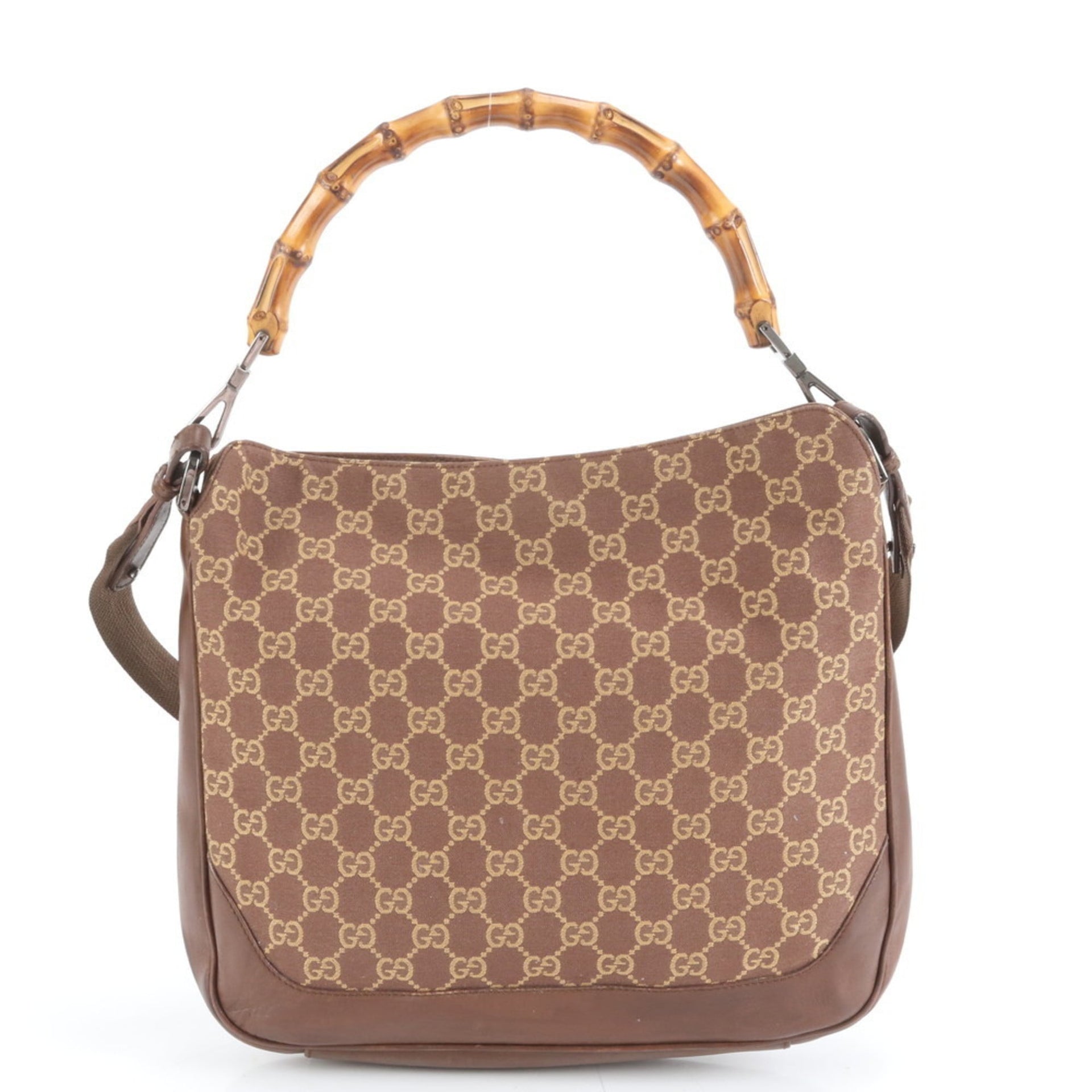 Gucci Bamboo GG Canvas 001 4095 Leather Shoulder Bag, Handbag, Brown, Women\'s