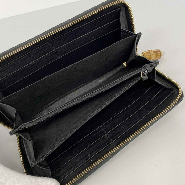 Gucci Bamboo Long Wallet 453158 Leather Black Women\'s