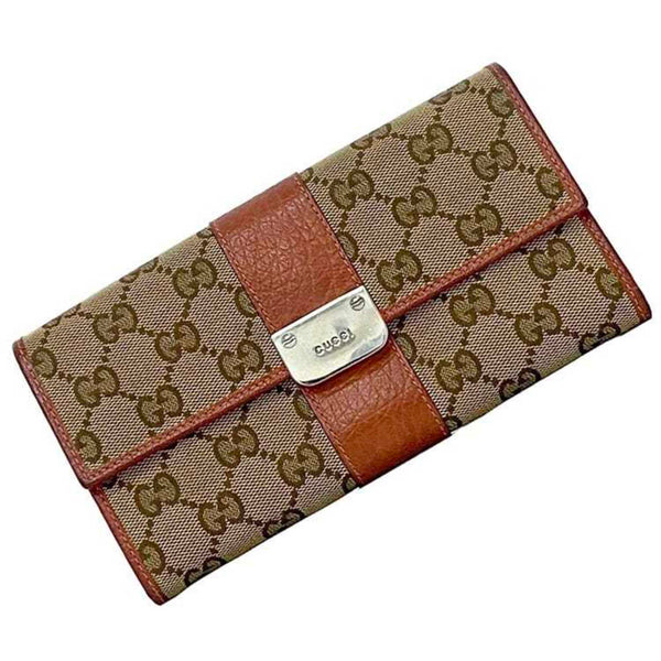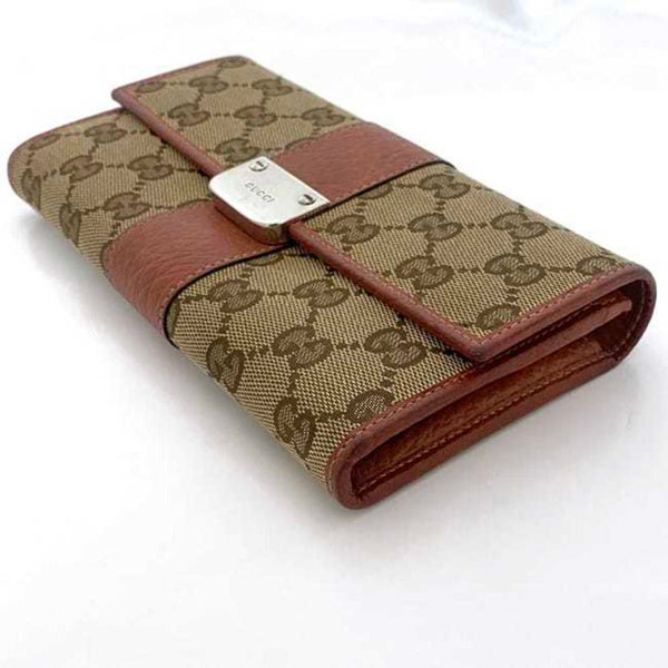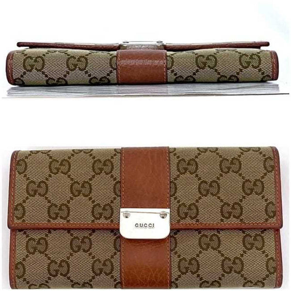 Gucci Bifold Long Wallet ec-23503 Beige Brown GG Canvas 233028 Leather 0416 GUCCI Box Women's Men's
