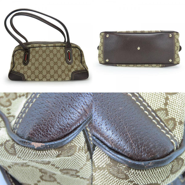 Gucci Boston Bag 161720 Shelley Prince GG Canvas Leather Beige Dark Brown Women\'s GUCCI