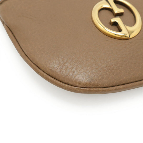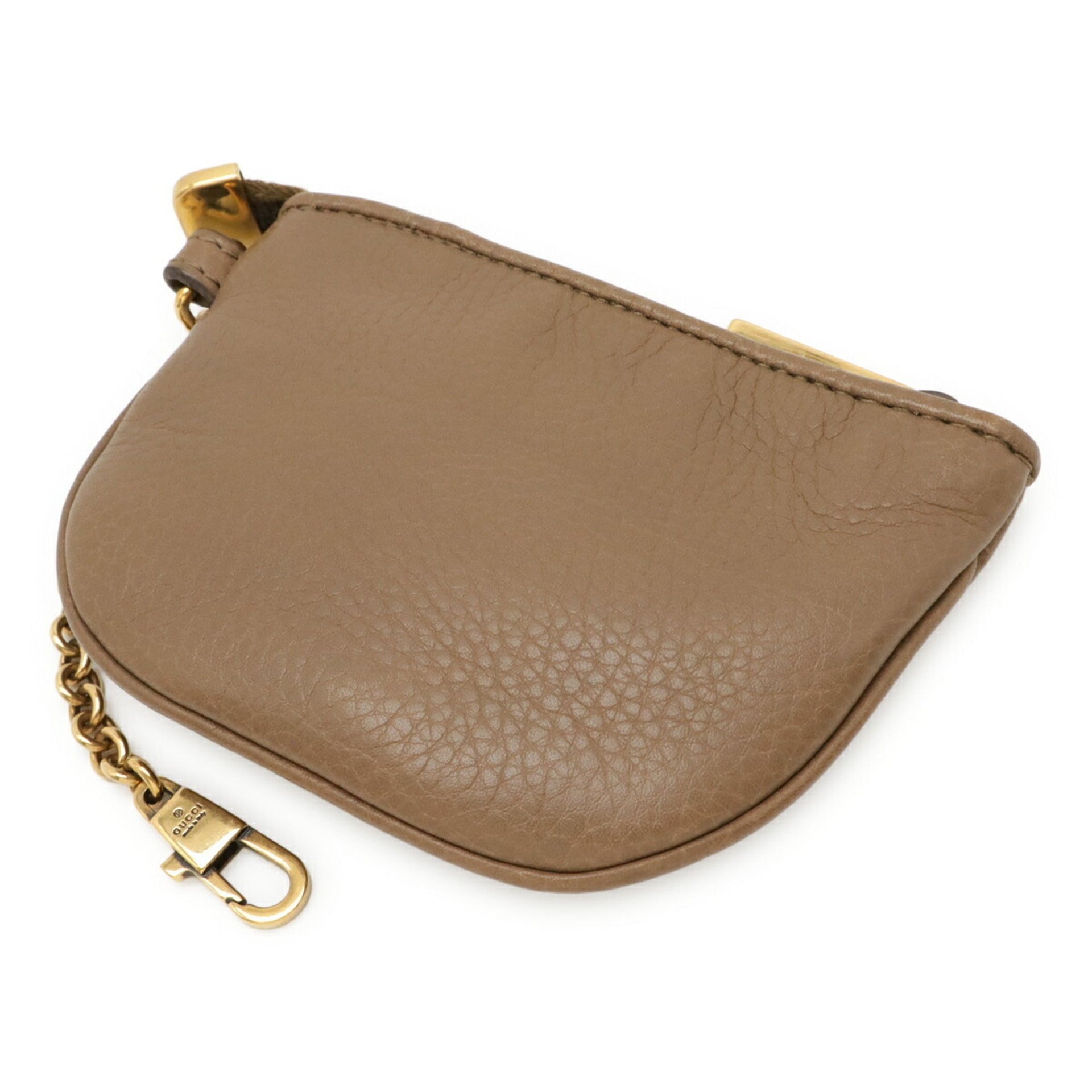 GUCCI Double G Detail Coin Case/Coin Purse in Mocha Beige Leather with Key Hook, 252042