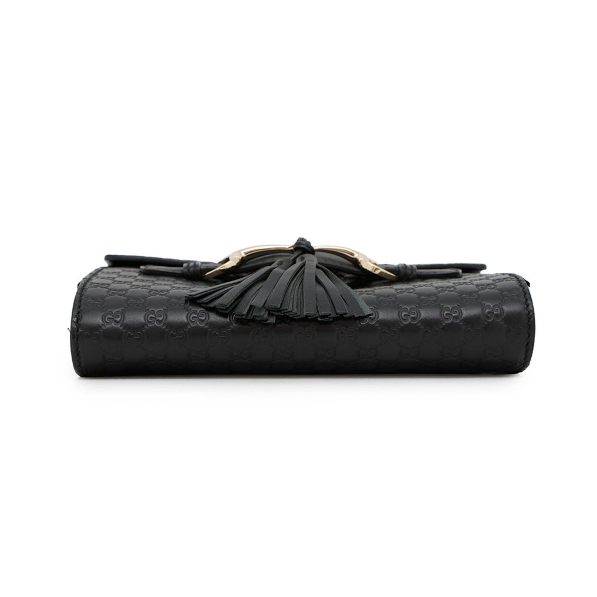 Gucci EMILY Micro Guccissima Chain Shoulder Bag with Tassel, Black Leather, 449636