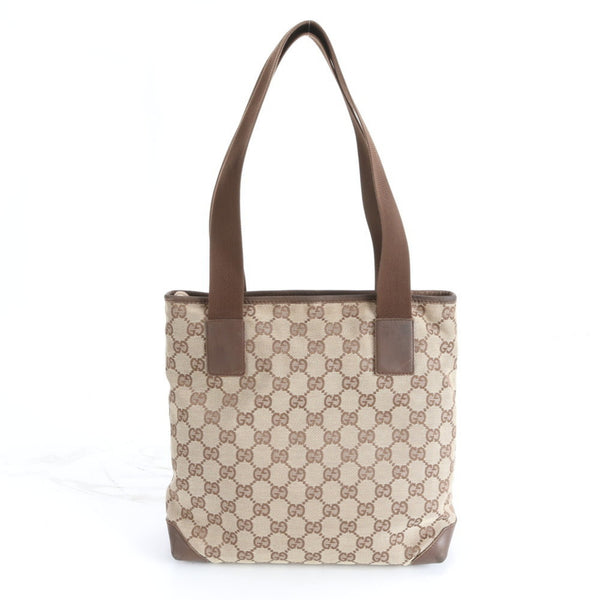 Gucci GG Canvas 019 0402 Leather Tote Bag Shoulder Handbag Brown Women\'s