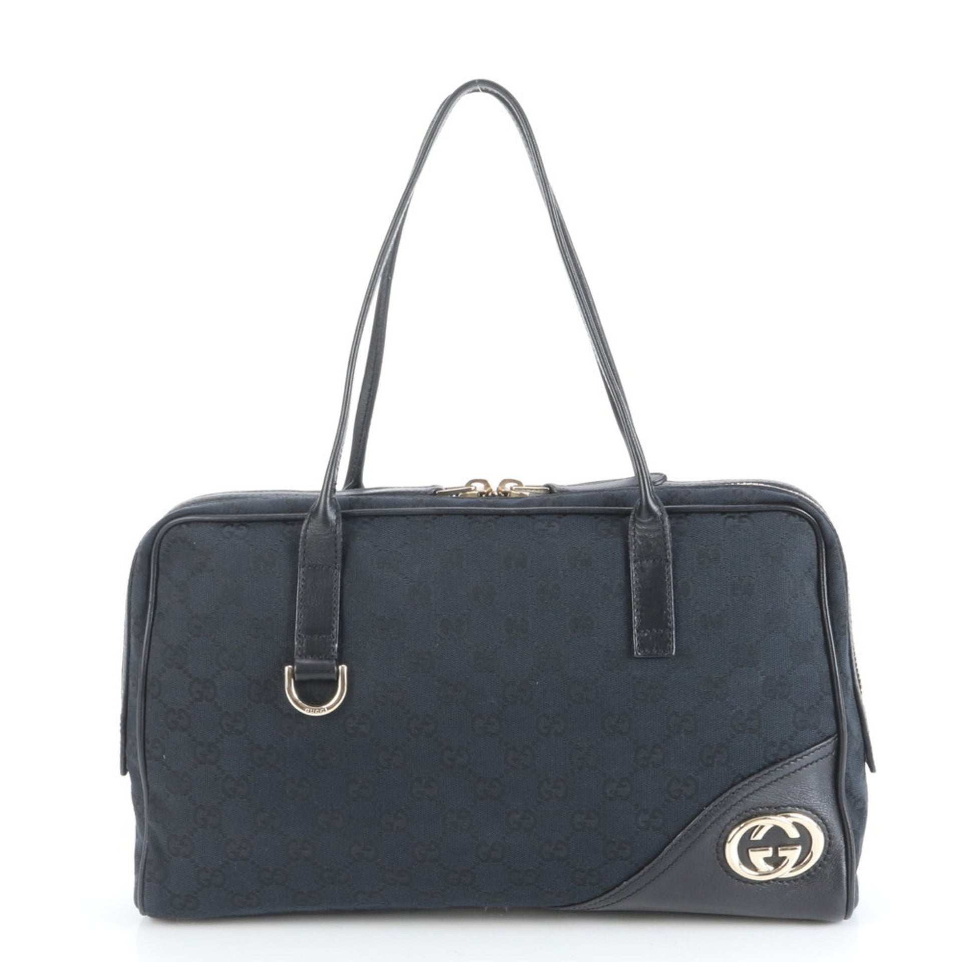 Gucci GG Canvas New Brit Leather Tote Shoulder Bag 169971 Black Women\'s