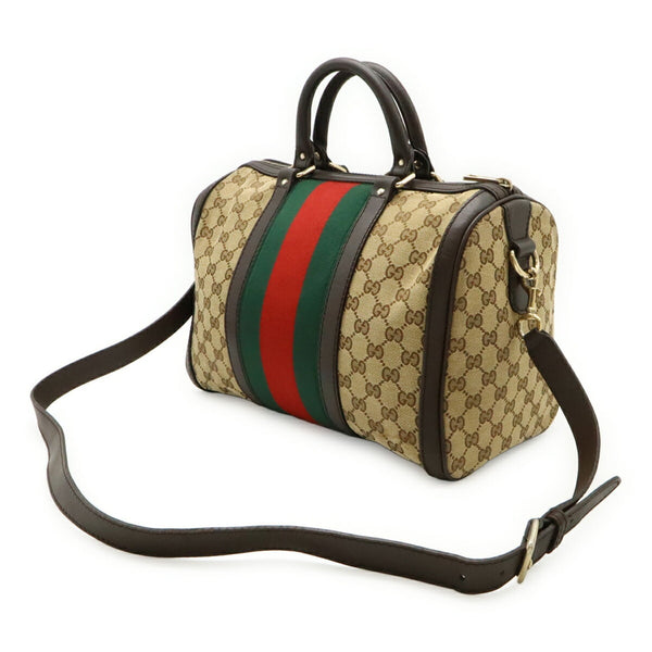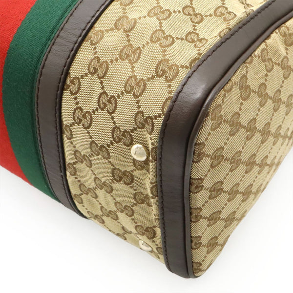 GUCCI GG Canvas Sherry Line Handbag/Shoulder Bag in Khaki Beige and Dark Brown Leather (247205)