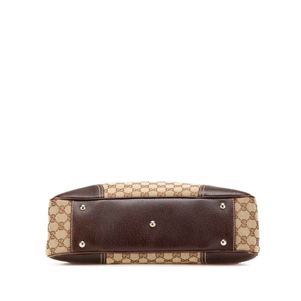 Gucci GG Canvas Sherry Line Tote Bag 163803 Brown and Leather Women\'s GUCCI