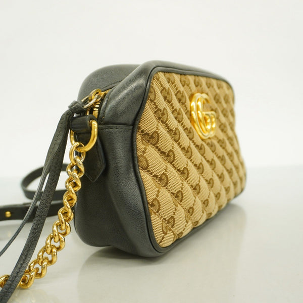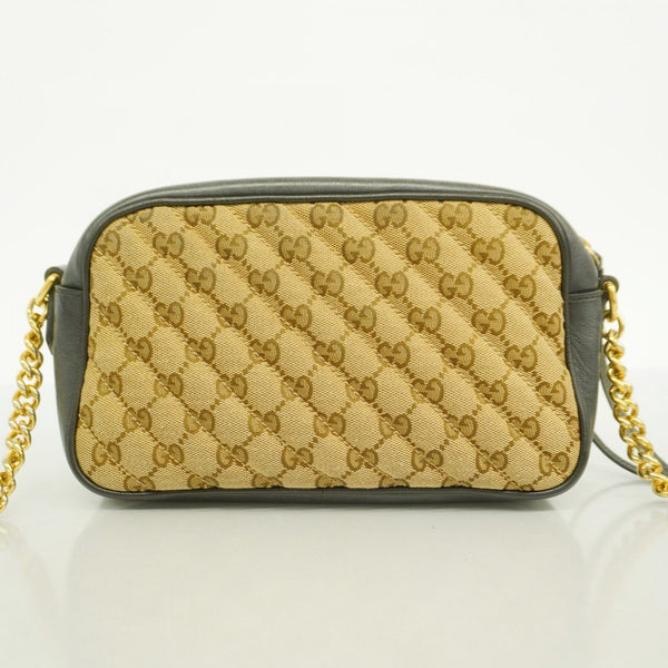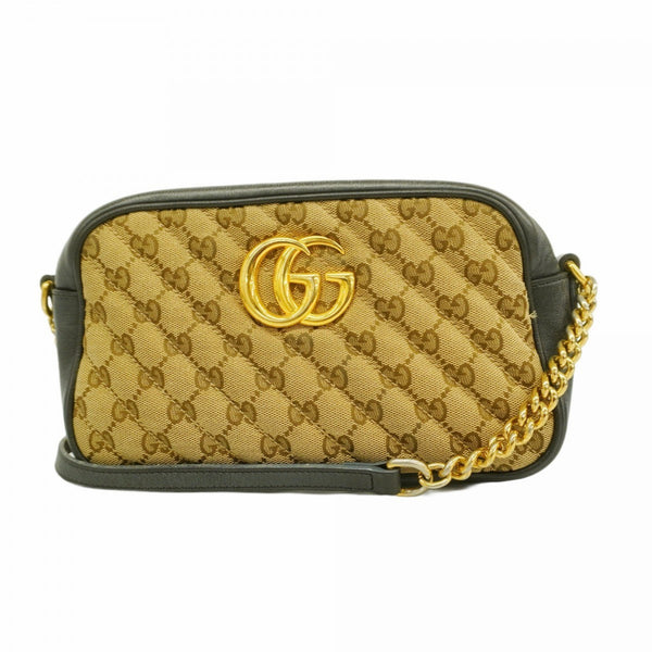 Gucci GG Canvas Shoulder Bag Marmont 447632 Beige Black Women's P1067920